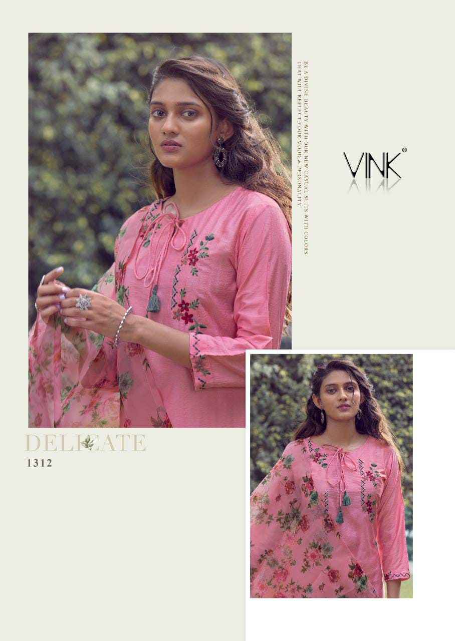*Brand :* VINK *Catalog Name :* Occasions Vol 2 Top With Pant And Dupatta *Price :* ?1125 *Piece :* 6 *Total Price :* 6750 ( GST Extra ) *Size :* M,L,XL,XXL *Fabric :* pure viscose *Availibility :* On Booking |