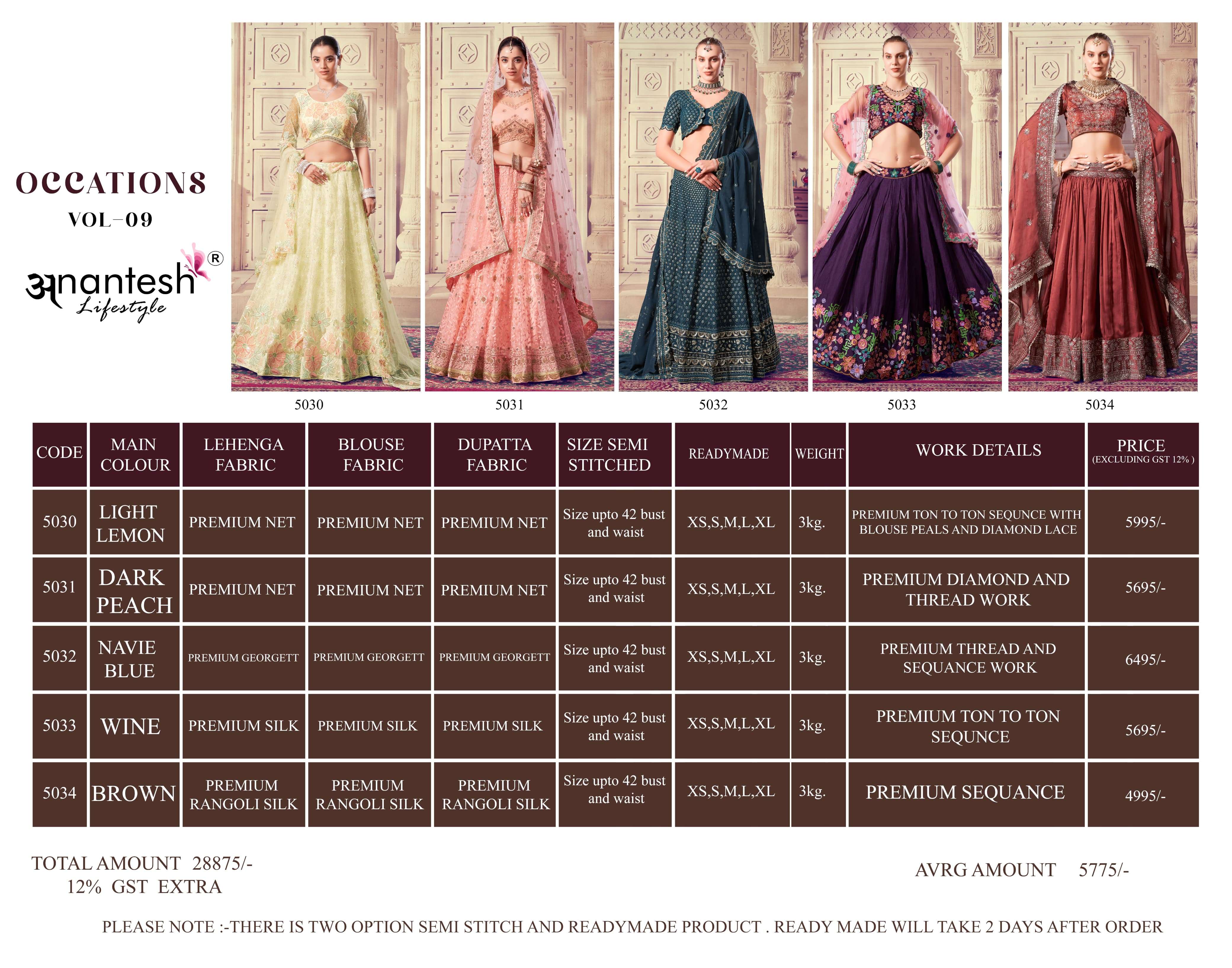 OCCASIONS VOL 9 SERIES 5030 TO 5034 By ANANTESH LIFESTYLE lehenga choli collection manufacturer surat