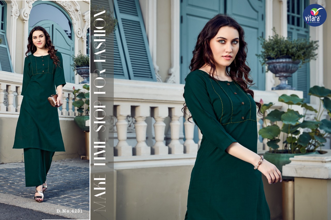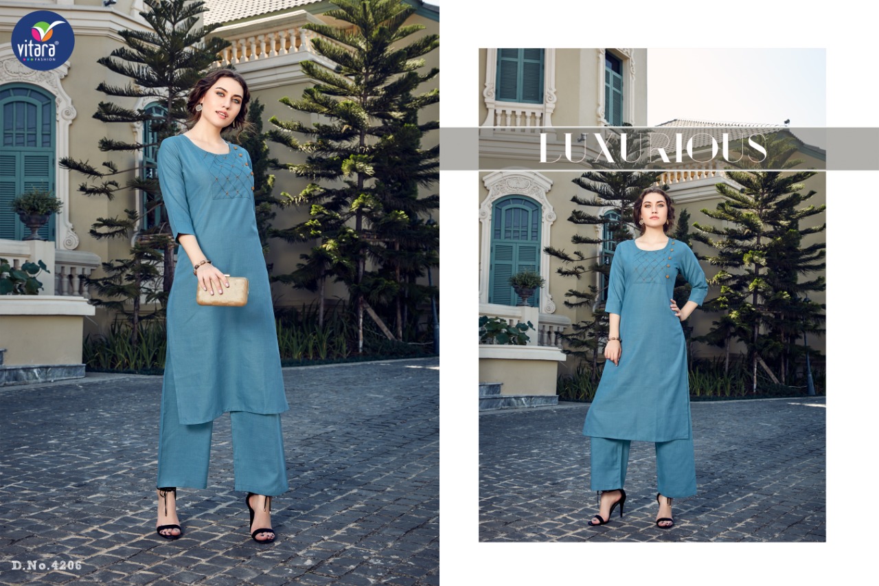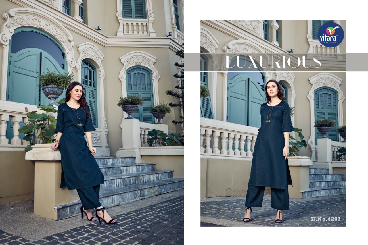 Buy Online Olive By Vitara Fashion Kurtis With Plazzo Wholesale Supplier And Dealer Gujarat 7 Pcs of Full Catalogue at Wholesale Price. Looking for Olive By Vitara Fashion Kurtis With Plazzo Wholesale Supplier And Dealer Gujarat Full Catalouge at Best Price? Buy Now Olive By Vitara Fashion Kurtis With Plazzo Wholesale Supplier And Dealer Gujarat at Wholesale Rate of Rs 4165 with Total 7 Pcs from authroized dealer and supplier of Brand. Cost of Each piece is just only Rs 595 which is very low and affordable price to resale the product in your retail store ,This is Surat based Wholesale Supplier & Dealer of Brand. Click on Brand name to Know more about Brand's products.Call or Whatsapp on 9898838984 for booking or enquiry