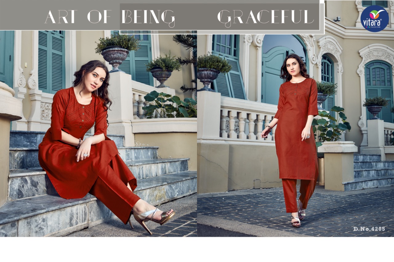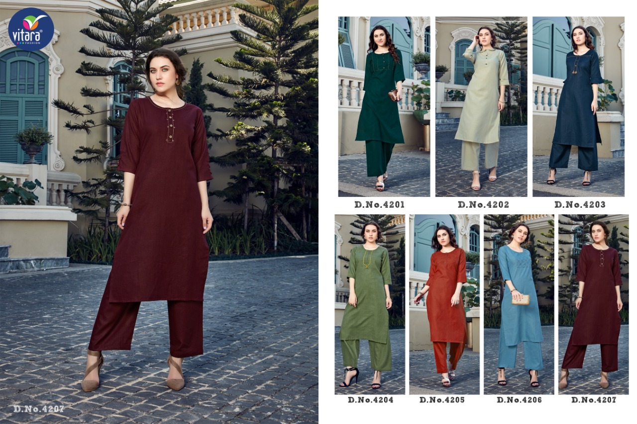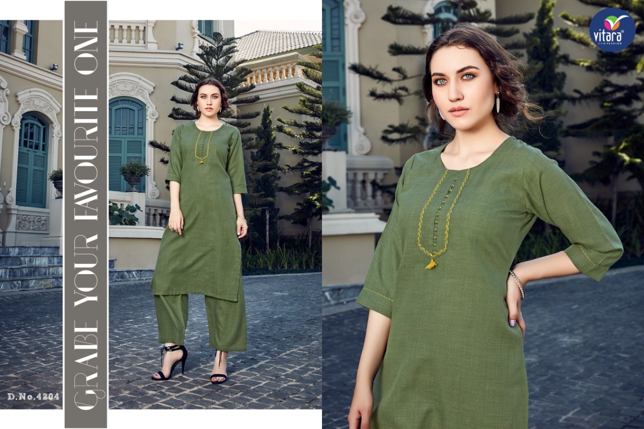 Buy Online Olive By Vitara Fashion Kurtis With Plazzo Wholesale Supplier And Dealer Gujarat 7 Pcs of Full Catalogue at Wholesale Price. Looking for Olive By Vitara Fashion Kurtis With Plazzo Wholesale Supplier And Dealer Gujarat Full Catalouge at Best Price? Buy Now Olive By Vitara Fashion Kurtis With Plazzo Wholesale Supplier And Dealer Gujarat at Wholesale Rate of Rs 4165 with Total 7 Pcs from authroized dealer and supplier of Brand. Cost of Each piece is just only Rs 595 which is very low and affordable price to resale the product in your retail store ,This is Surat based Wholesale Supplier & Dealer of Brand. Click on Brand name to Know more about Brand's products.Call or Whatsapp on 9898838984 for booking or enquiry