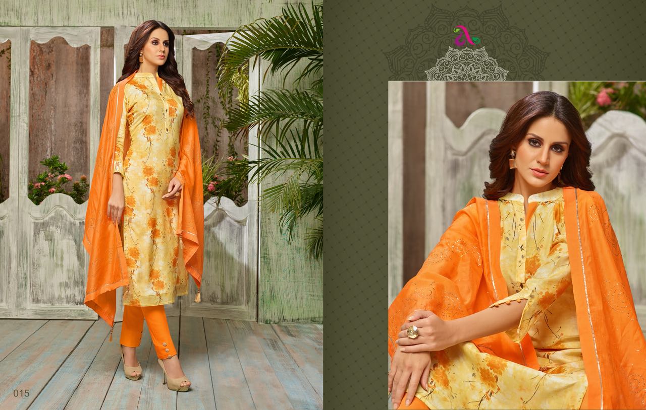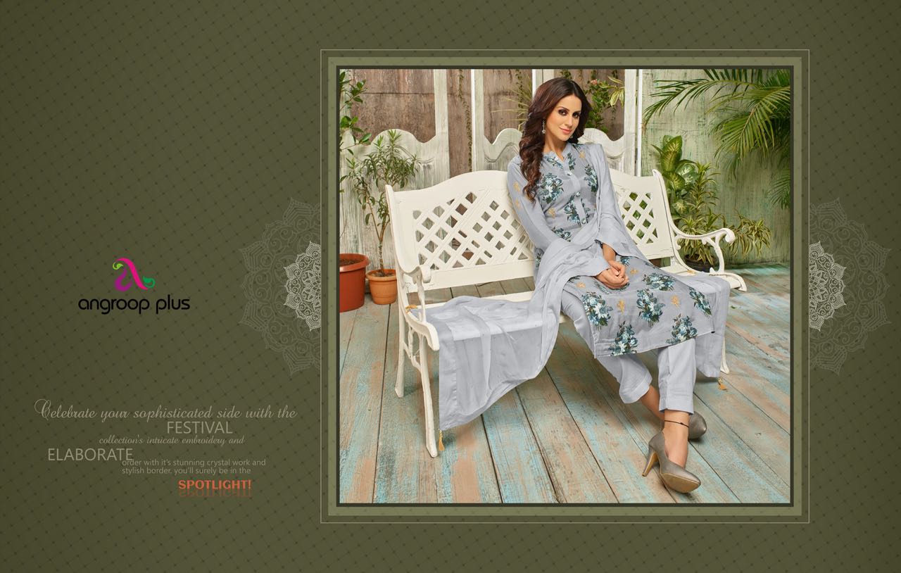 Buy Online Olivia By Angroop Plus Muslin Silk Digital Printed Suits Wholesale Supplier And Dealer Surat 7 Pcs of Full Catalogue at Wholesale Price. Looking for Olivia By Angroop Plus Muslin Silk Digital Printed Suits Wholesale Supplier And Dealer Surat Full Catalouge at Best Price? Buy Now Olivia By Angroop Plus Muslin Silk Digital Printed Suits Wholesale Supplier And Dealer Surat at Wholesale Rate of Rs 4795 with Total 7 Pcs from authroized dealer and supplier of ANGROOP PLUS Brand. Cost of Each piece is just only Rs 685 which is very low and affordable price to resale the product in your retail store ,This is Surat based Wholesale Supplier & Dealer of ANGROOP PLUS Brand. Click on Brand name to Know more about ANGROOP PLUS Brand's products.Call or Whatsapp on 9898838984 for booking or enquiry