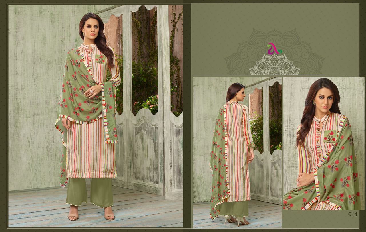 *Catelog :OLIVIA* ???????? ?? *Top: masline silk*digital print* ?? *Bottom:cotton solid* ?? *Dupatta :naznin dup*four side digital lace ??*Designs:7* ??all accesories are inc excl bag packing Price:685/- only GST extra |