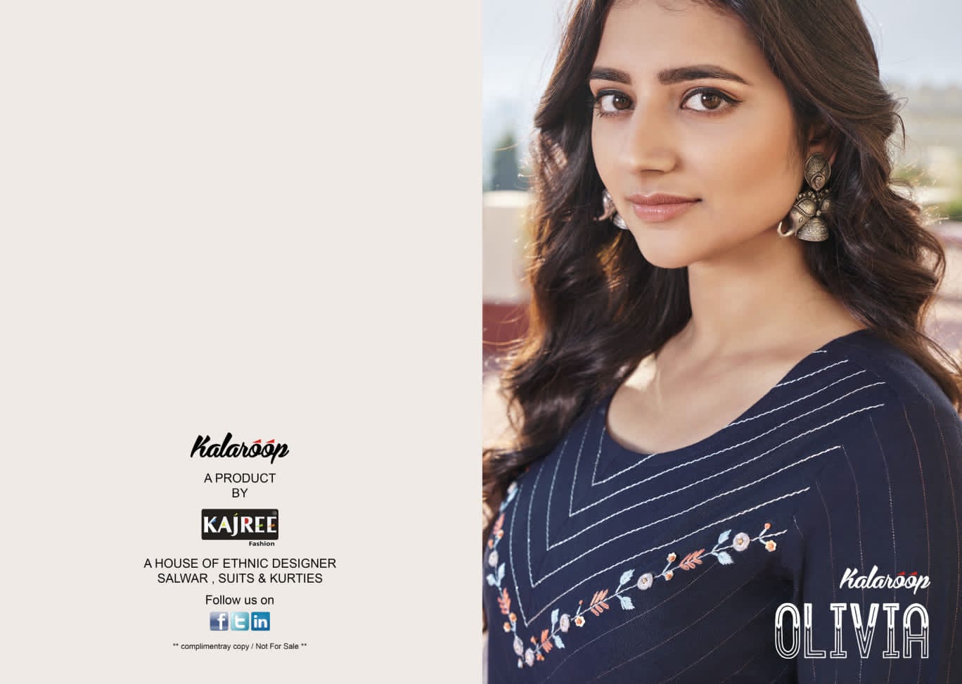 Buy Online Olivia By Kalaroop By Kajree Fabrics Dealer And Exporter Surat Gujarat 6 Pcs of Full Catalogue at Wholesale Price. Looking for Olivia By Kalaroop By Kajree Fabrics Dealer And Exporter Surat Gujarat Full Catalouge at Best Price? Buy Now Olivia By Kalaroop By Kajree Fabrics Dealer And Exporter Surat Gujarat at Wholesale Rate of Rs 7494 with Total 6 Pcs from authroized dealer and supplier of Brand. Cost of Each piece is just only Rs 1249 which is very low and affordable price to resale the product in your retail store ,This is Surat based Wholesale Supplier & Dealer of Brand. Click on Brand name to Know more about Brand's products.Call or Whatsapp on 9898838984 for booking or enquiry