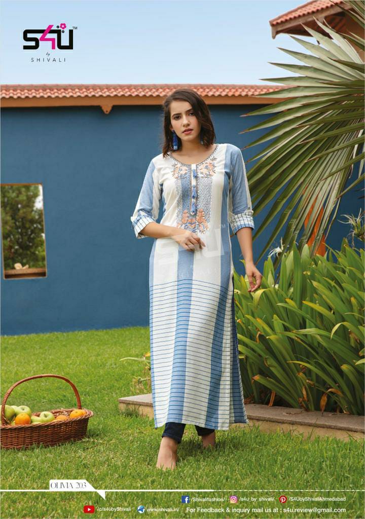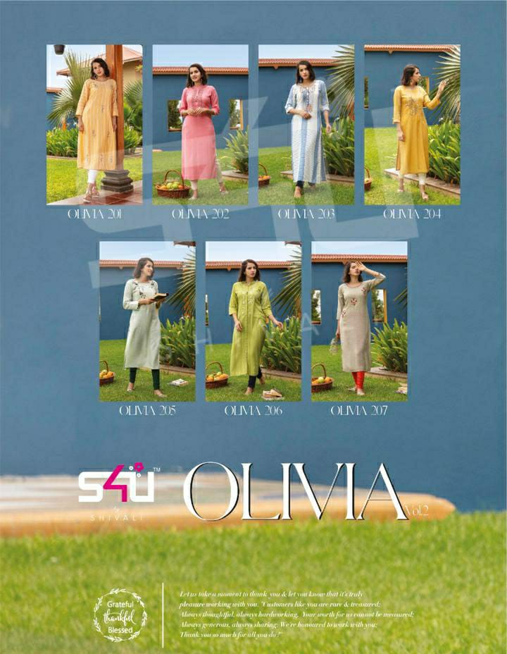 Buy Online Olivia Vol 2 By S4u Stylish Wear Manufacturer And Dealer From India 7 Pcs of Full Catalogue at Wholesale Price. Looking for Olivia Vol 2 By S4u Stylish Wear Manufacturer And Dealer From India Full Catalouge at Best Price? Buy Now Olivia Vol 2 By S4u Stylish Wear Manufacturer And Dealer From India at Wholesale Rate of Rs 5257 with Total 7 Pcs from authroized dealer and supplier of S4U Brand. Cost of Each piece is just only Rs 751 which is very low and affordable price to resale the product in your retail store ,This is Surat based Wholesale Supplier & Dealer of S4U Brand. Click on Brand name to Know more about S4U Brand's products.Call or Whatsapp on 9898838984 for booking or enquiry