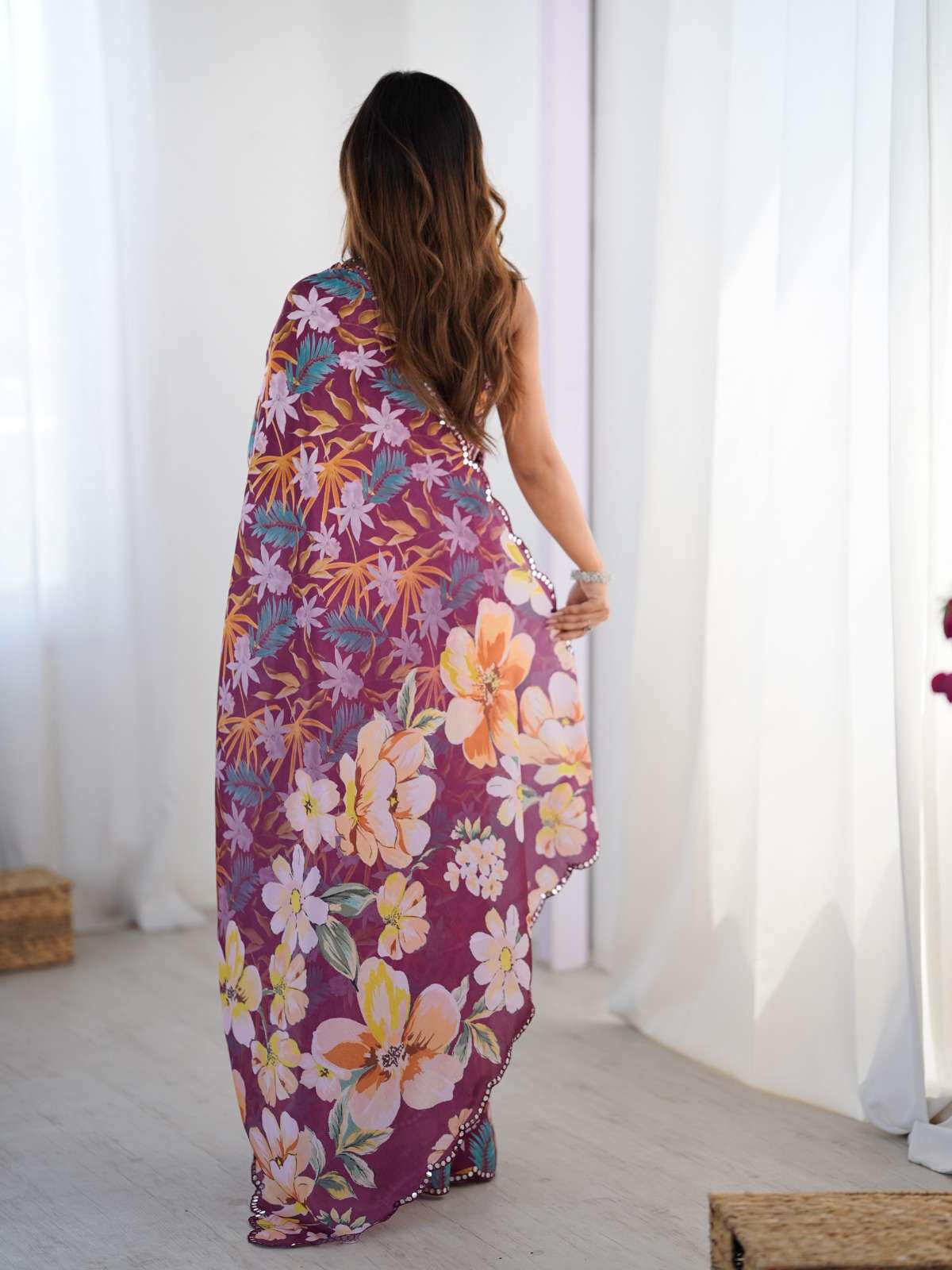 ✍🏻 Product Details ⬇️ ✔️Fabric :- heavy Chinnon ✔️Pattern :- Print Work with Beautiful Kutchi Work Mirror Lace Border ✔️Blouse :- heavy Chinnon