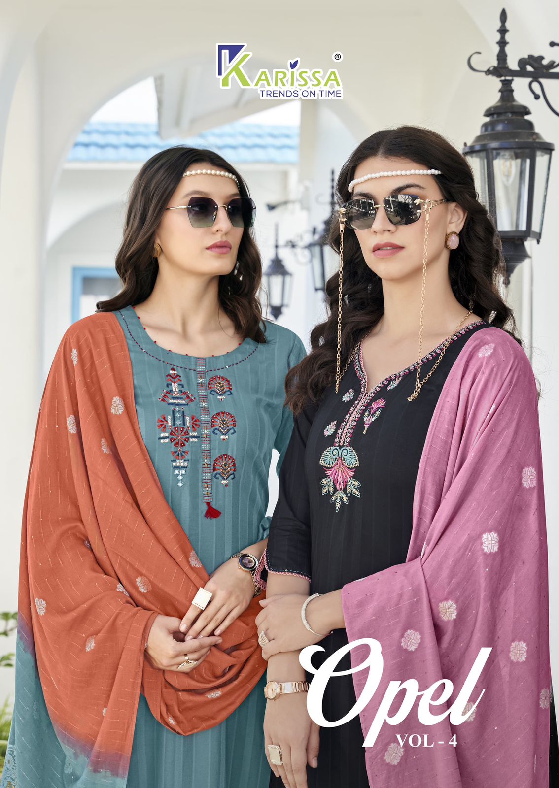 Buy Online Opel Vol 4 By Karissa Top Pant Dupatta Concept 6 Pcs of Full Catalogue at Wholesale Price. Looking for Opel Vol 4 By Karissa Top Pant Dupatta Concept Full Catalouge at Best Price? Buy Now Opel Vol 4 By Karissa Top Pant Dupatta Concept at Wholesale Rate of Rs 0 with Total 6 Pcs from authroized dealer and supplier of Brand. Cost of Each piece is just only Rs 0 which is very low and affordable price to resale the product in your retail store ,This is Surat based Wholesale Supplier & Dealer of Brand. Click on Brand name to Know more about Brand's products.Call or Whatsapp on 9898838984 for booking or enquiry