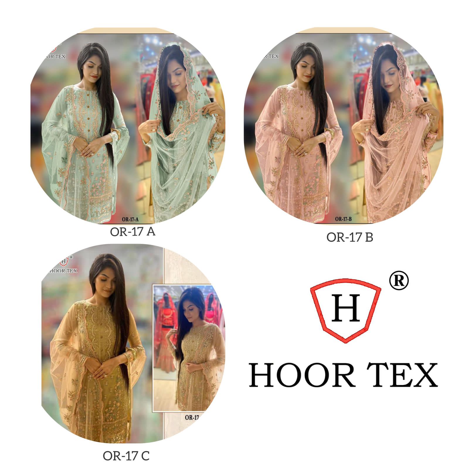 Buy Online Or 17 A To C By Hoor Tex Organza Suits 3 Pcs of Full Catalogue at Wholesale Price. Looking for Or 17 A To C By Hoor Tex Organza Suits Full Catalouge at Best Price? Buy Now Or 17 A To C By Hoor Tex Organza Suits at Wholesale Rate of Rs 3447 with Total 3 Pcs from authroized dealer and supplier of Brand. Cost of Each piece is just only Rs 1149 which is very low and affordable price to resale the product in your retail store ,This is Surat based Wholesale Supplier & Dealer of Brand. Click on Brand name to Know more about Brand's products.Call or Whatsapp on 9898838984 for booking or enquiry
