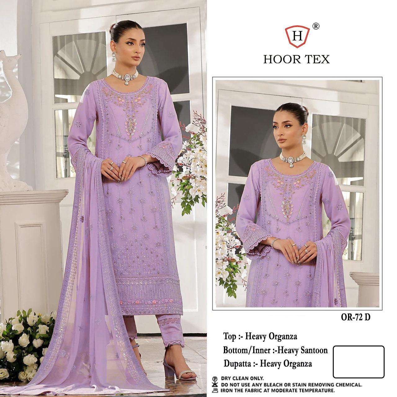 Buy Online OR 72 A To D by hoor tex Heavy Organza suit collection manufacturer surat 4 Pcs of Full Catalogue at Wholesale Price. Looking for OR 72 A To D by hoor tex Heavy Organza suit collection manufacturer surat Full Catalouge at Best Price? Buy Now OR 72 A To D by hoor tex Heavy Organza suit collection manufacturer surat at Wholesale Rate of Rs 5000 with Total 4 Pcs from authroized dealer and supplier of HOOR TEX Brand. Cost of Each piece is just only Rs 1250 which is very low and affordable price to resale the product in your retail store ,This is Surat based Wholesale Supplier & Dealer of HOOR TEX Brand. Click on Brand name to Know more about HOOR TEX Brand's products.Call or Whatsapp on 9898838984 for booking or enquiry