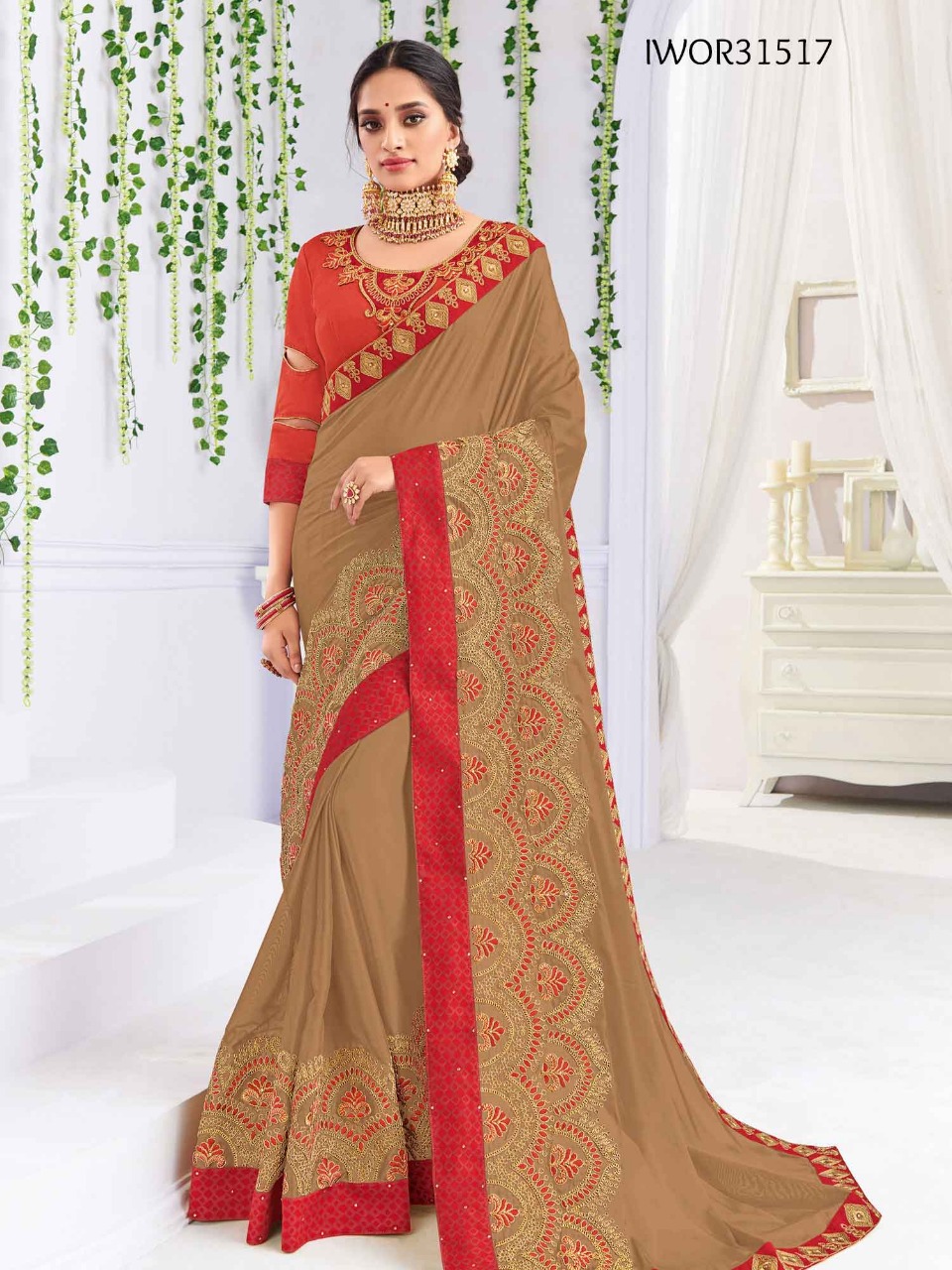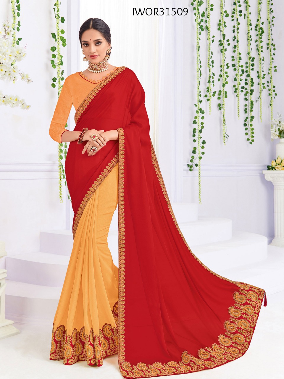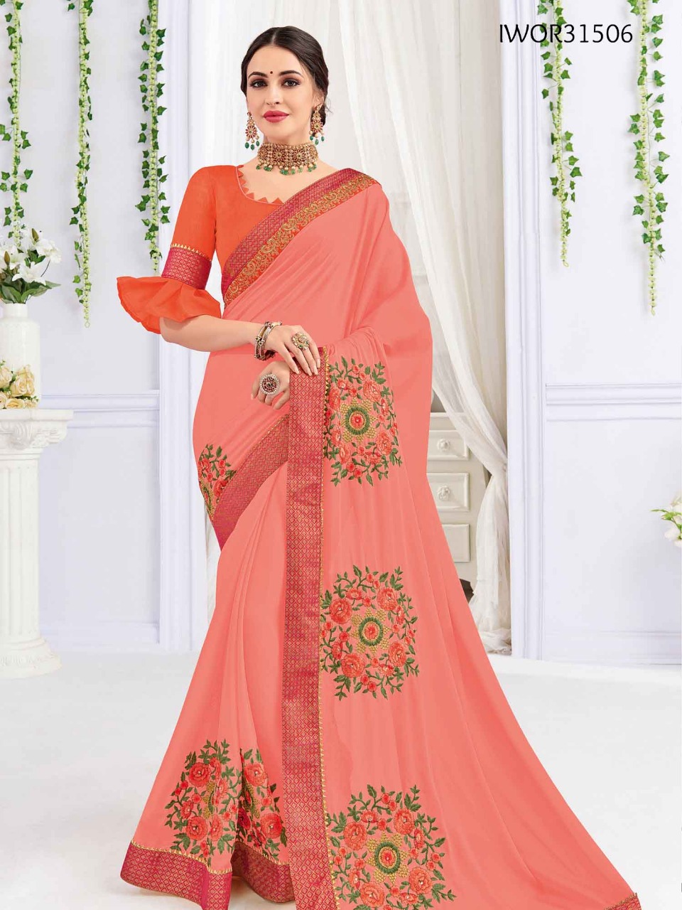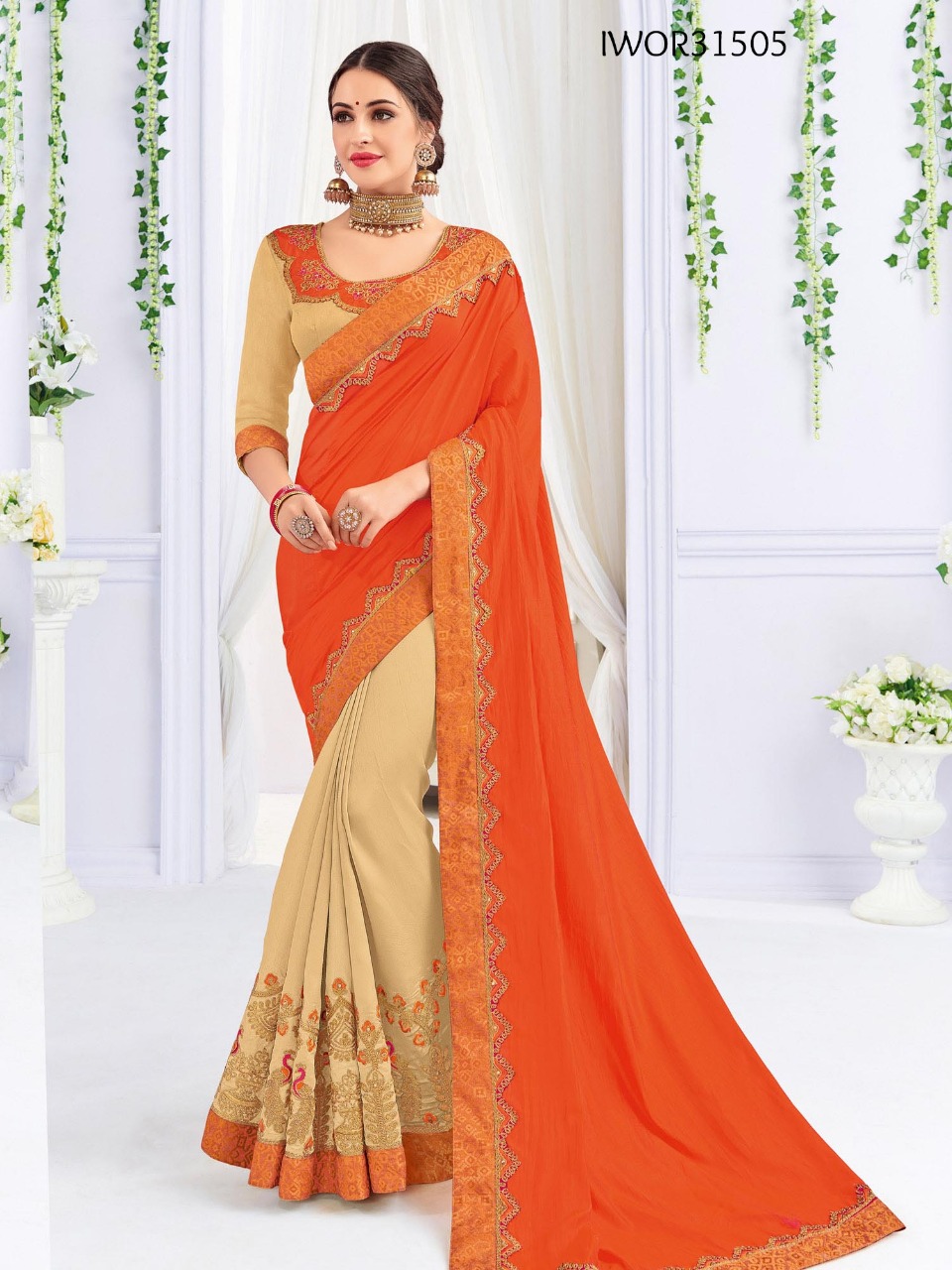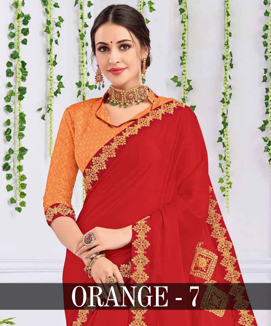 Orange 7 Fancy Designer Party Wear Saree Collection Wholesaler Surat