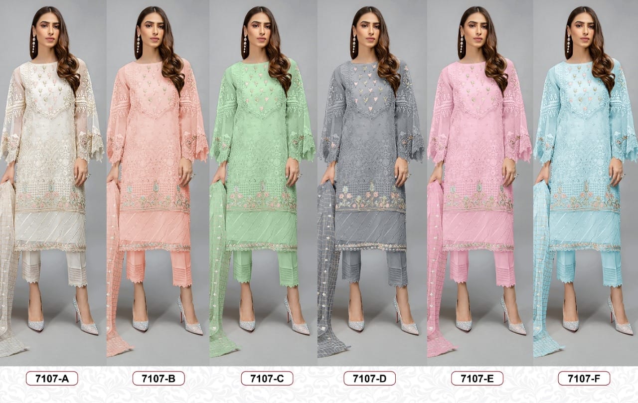 Buy Online Organza With Embroidery Work Suit D No 7107 Colors Manufacturer Traders And Dealer From All Over India 6 Pcs of Full Catalogue at Wholesale Price. Looking for Organza With Embroidery Work Suit D No 7107 Colors Manufacturer Traders And Dealer From All Over India Full Catalouge at Best Price? Buy Now Organza With Embroidery Work Suit D No 7107 Colors Manufacturer Traders And Dealer From All Over India at Wholesale Rate of Rs 6900 with Total 6 Pcs from authroized dealer and supplier of Brand. Cost of Each piece is just only Rs 1150 which is very low and affordable price to resale the product in your retail store ,This is Surat based Wholesale Supplier & Dealer of Brand. Click on Brand name to Know more about Brand's products.Call or Whatsapp on 9898838984 for booking or enquiry