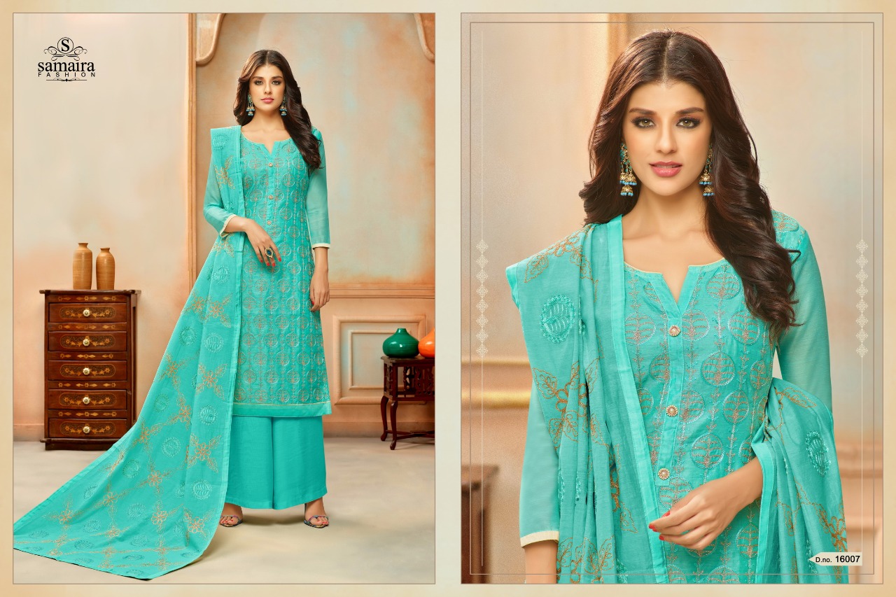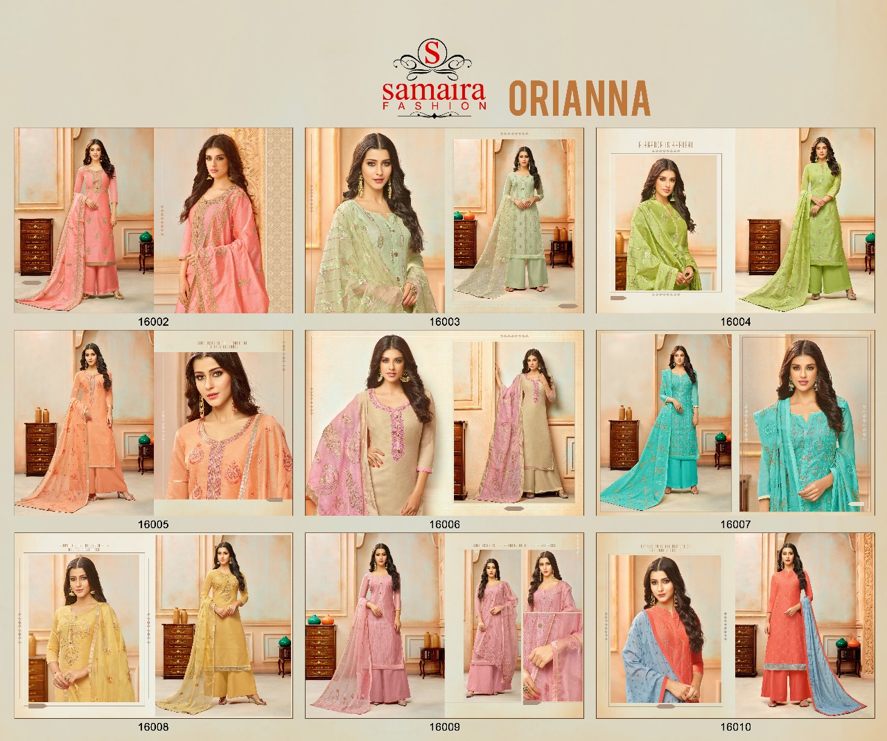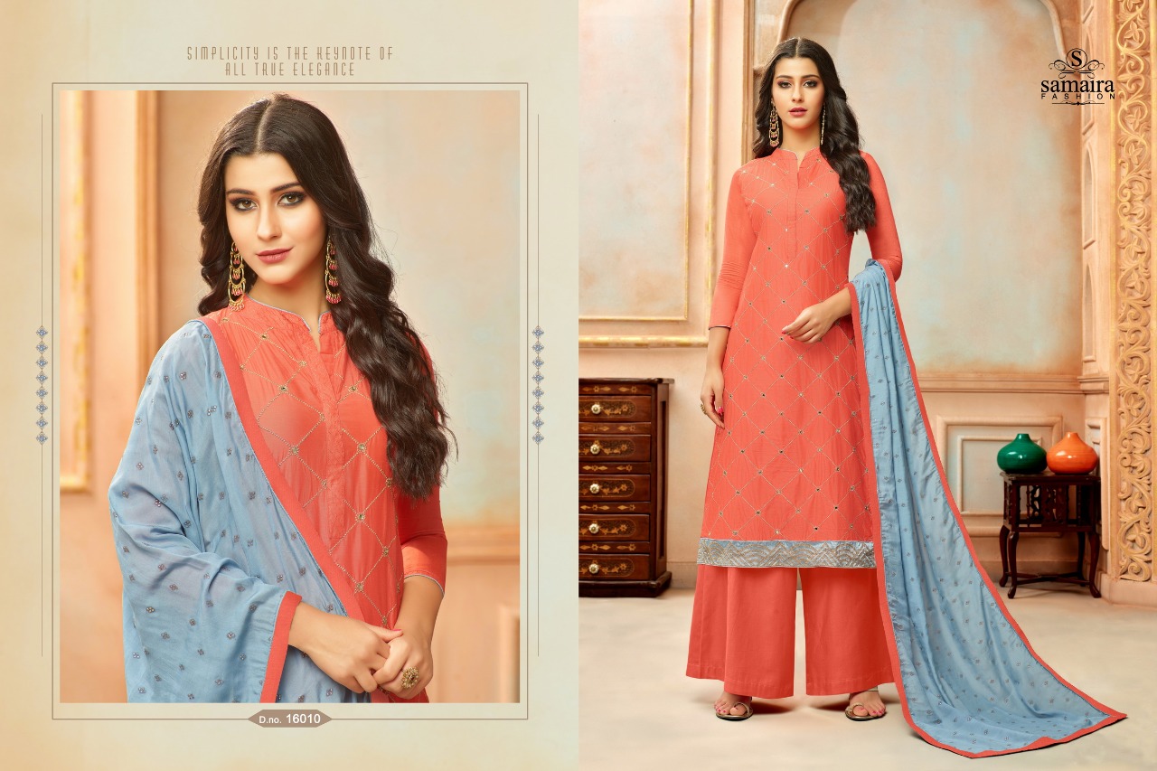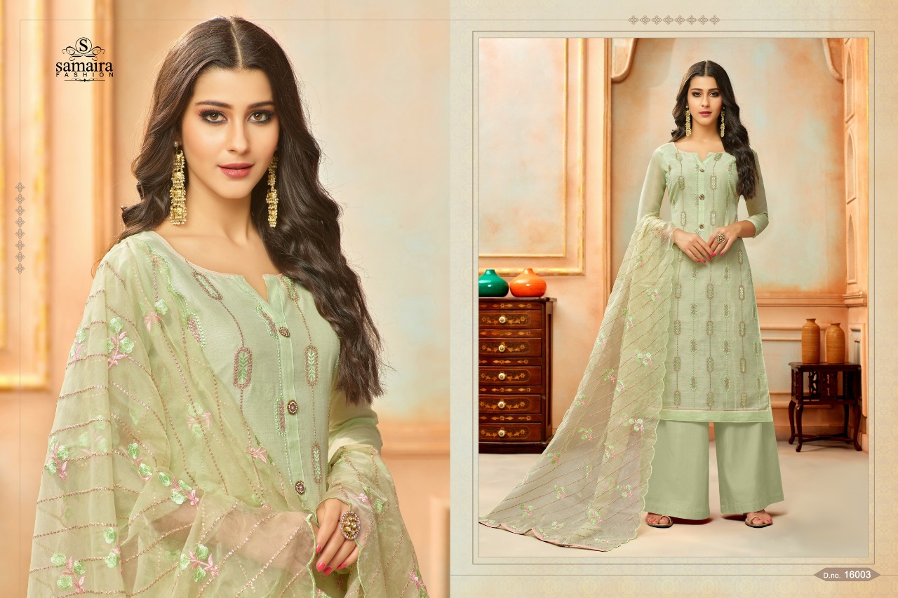 Buy Online Orianna By Samaira Fashion Silk Suit Series16002 To 16010 Wholesale Dealer And Supplier Surat. 9 Pcs of Full Catalogue at Wholesale Price. Looking for Orianna By Samaira Fashion Silk Suit Series16002 To 16010 Wholesale Dealer And Supplier Surat. Full Catalouge at Best Price? Buy Now Orianna By Samaira Fashion Silk Suit Series16002 To 16010 Wholesale Dealer And Supplier Surat. at Wholesale Rate of Rs 6750 with Total 9 Pcs from authroized dealer and supplier of Samaira Fashion Brand. Cost of Each piece is just only Rs 750 which is very low and affordable price to resale the product in your retail store ,This is Surat based Wholesale Supplier & Dealer of Samaira Fashion Brand. Click on Brand name to Know more about Samaira Fashion Brand's products.Call or Whatsapp on 9898838984 for booking or enquiry