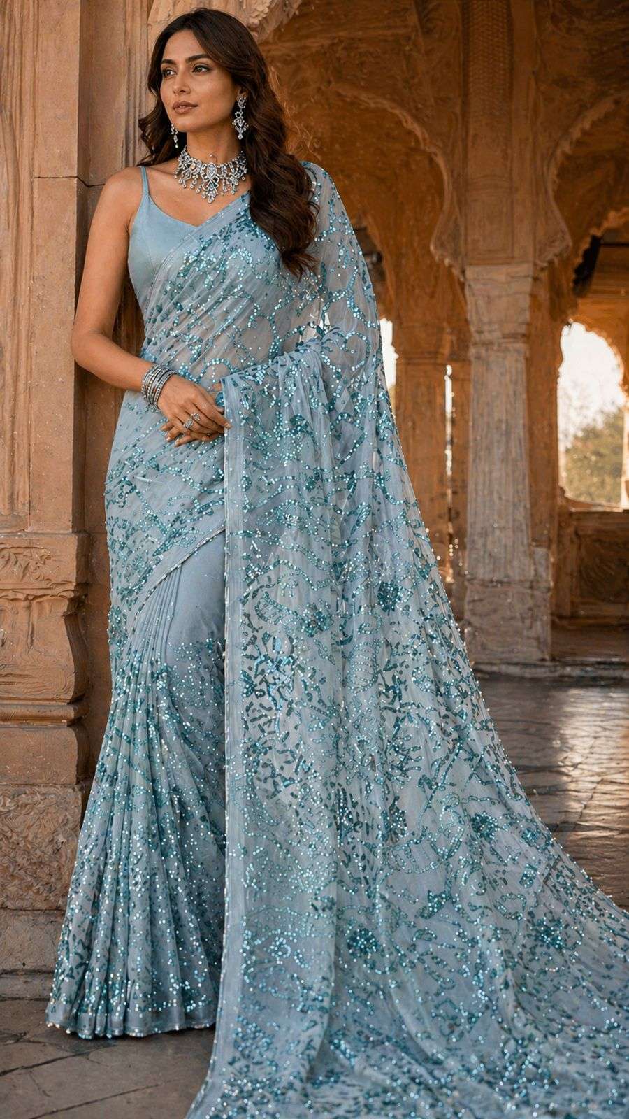 Fabric :*PREMIUM EXPORT QUALITY FINE YARD FABRIC WITH HEAVY FULL SEQUINS WORK SAREE*