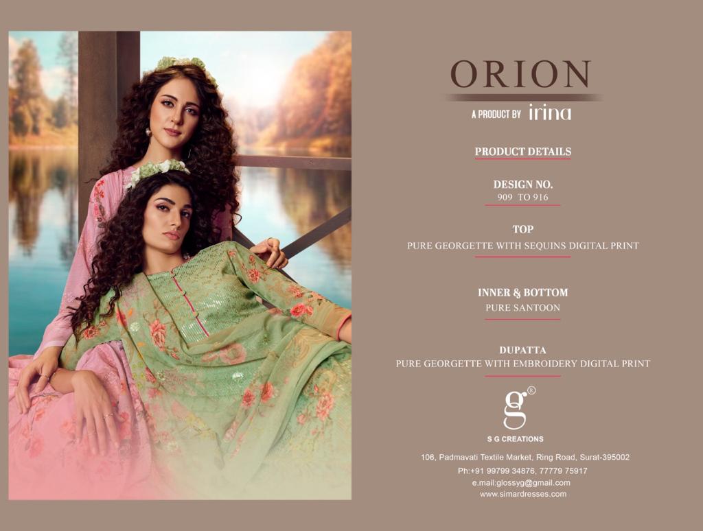 Buy Online Orion By Glossy Series 909 To 916 Designer Party Wear Suits Wholesale Supplier Gujarat 8 Pcs of Full Catalogue at Wholesale Price. Looking for Orion By Glossy Series 909 To 916 Designer Party Wear Suits Wholesale Supplier Gujarat Full Catalouge at Best Price? Buy Now Orion By Glossy Series 909 To 916 Designer Party Wear Suits Wholesale Supplier Gujarat at Wholesale Rate of Rs 11168 with Total 8 Pcs from authroized dealer and supplier of GLOSSY Brand. Cost of Each piece is just only Rs 1396 which is very low and affordable price to resale the product in your retail store ,This is Surat based Wholesale Supplier & Dealer of GLOSSY Brand. Click on Brand name to Know more about GLOSSY Brand's products.Call or Whatsapp on 9898838984 for booking or enquiry