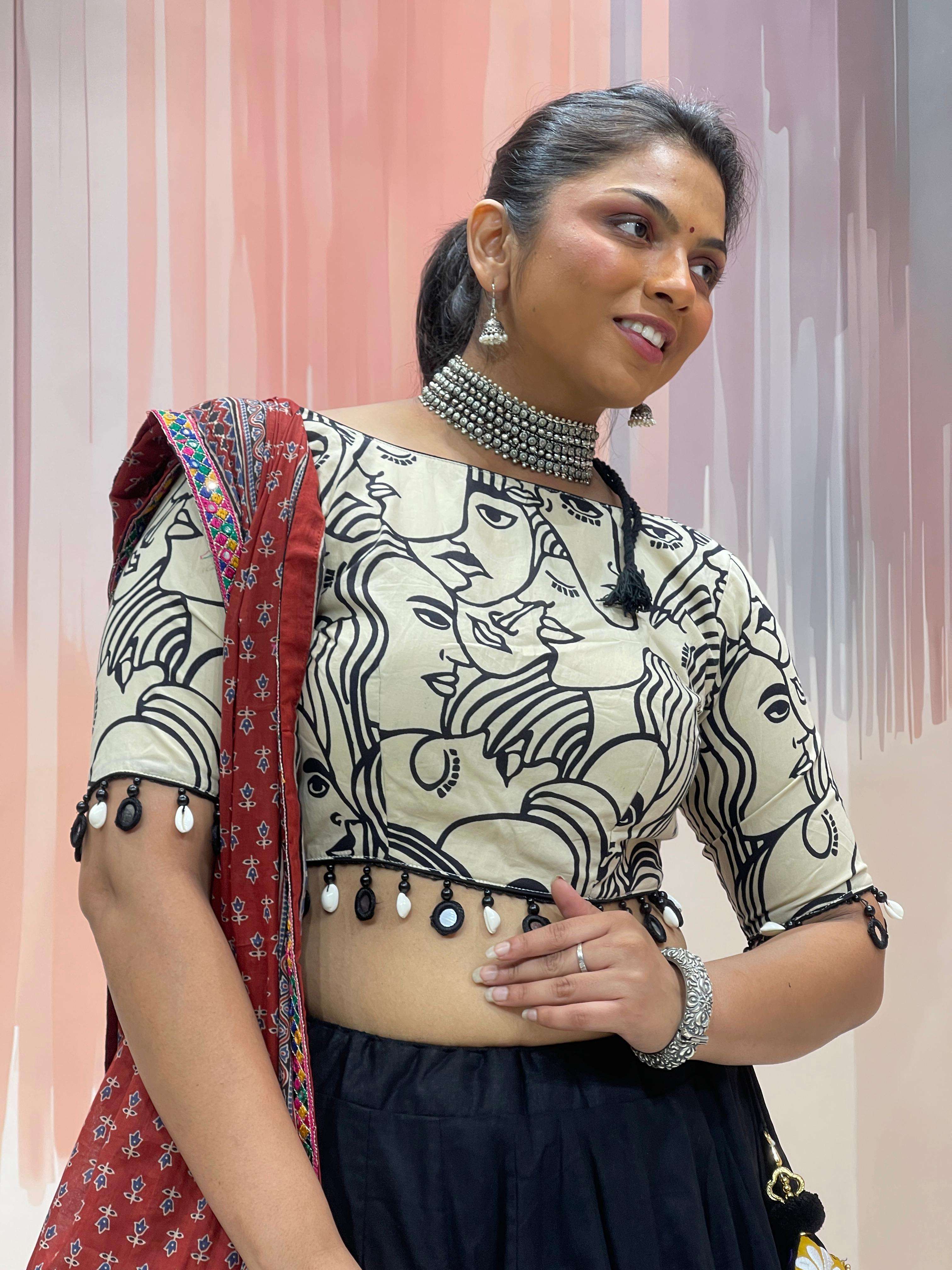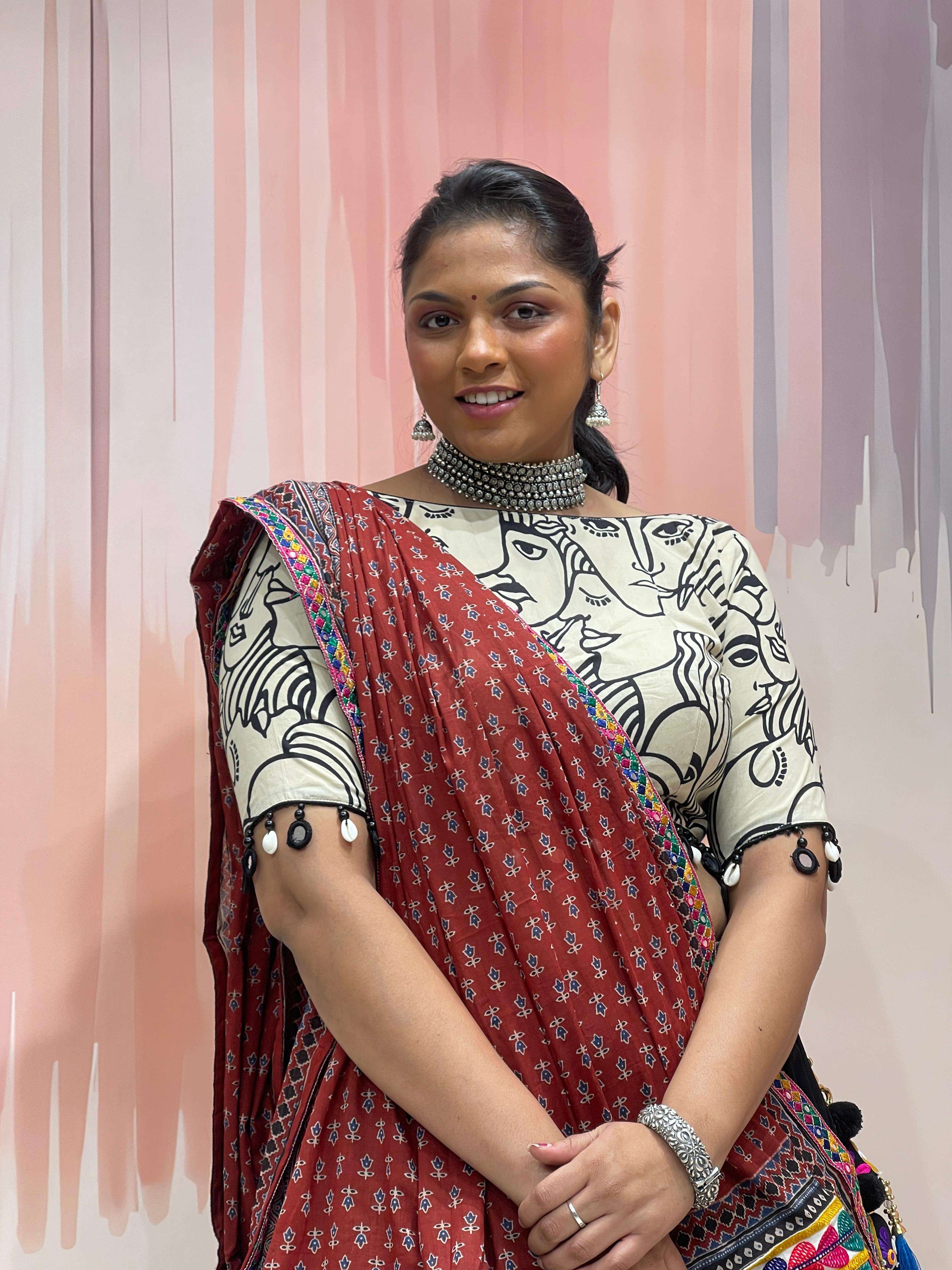 *Blouse*: *Designer Mal Digitsl face Printed Indo western Best quality half sleeves Kodi work designer 🪡 work blouse with matching latkan 38” size plus margin 2” for Size L*