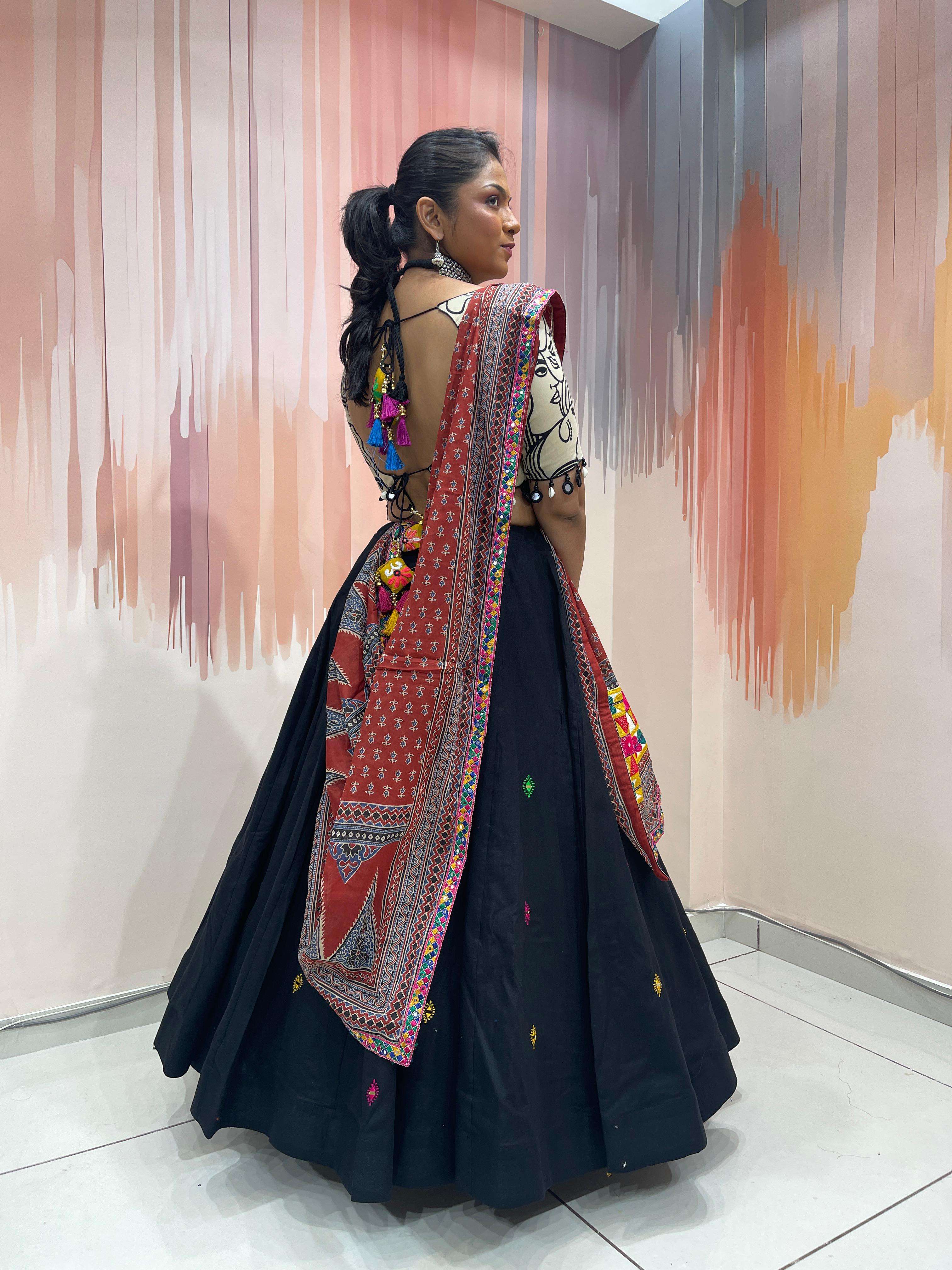 *Simple & Sober Mal Cotton Sober & Elegance Small floral Embroidered Chaniya choli with All over Kora Silk Traditional Embroidered border Dupatta Designer Outfit*
