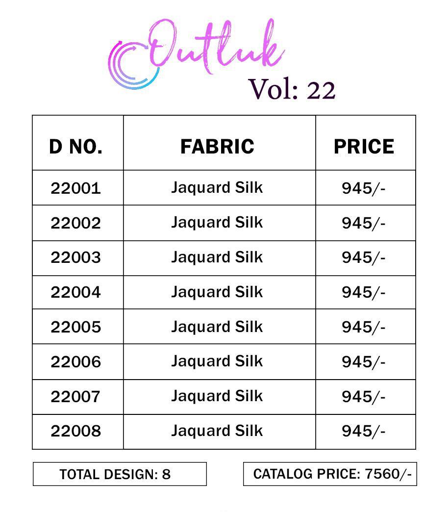 Buy Online Outlook Vol 22 New Kurta Pajama Single And Set Stockiest And Supplier From Surat 8 Pcs of Full Catalogue at Wholesale Price. Looking for Outlook Vol 22 New Kurta Pajama Single And Set Stockiest And Supplier From Surat Full Catalouge at Best Price? Buy Now Outlook Vol 22 New Kurta Pajama Single And Set Stockiest And Supplier From Surat at Wholesale Rate of Rs 7560 with Total 8 Pcs from authroized dealer and supplier of Brand. Cost of Each piece is just only Rs 945 which is very low and affordable price to resale the product in your retail store ,This is Surat based Wholesale Supplier & Dealer of Brand. Click on Brand name to Know more about Brand's products.Call or Whatsapp on 9898838984 for booking or enquiry