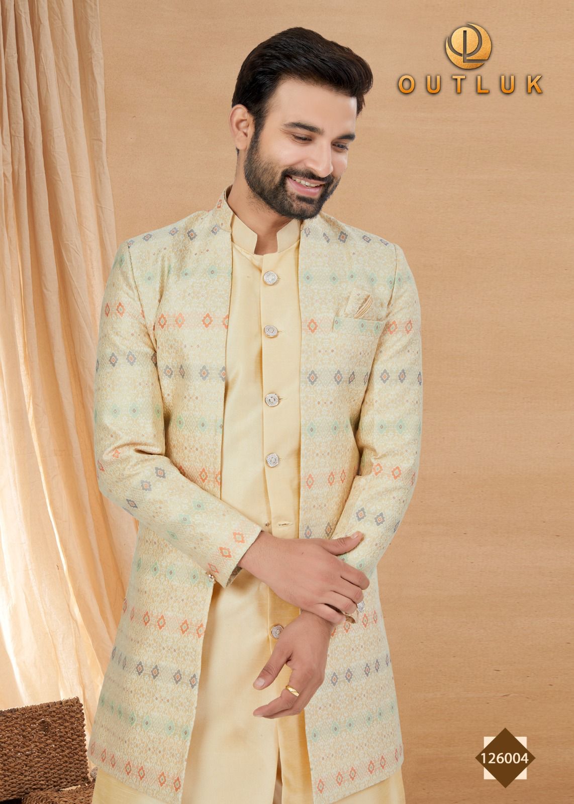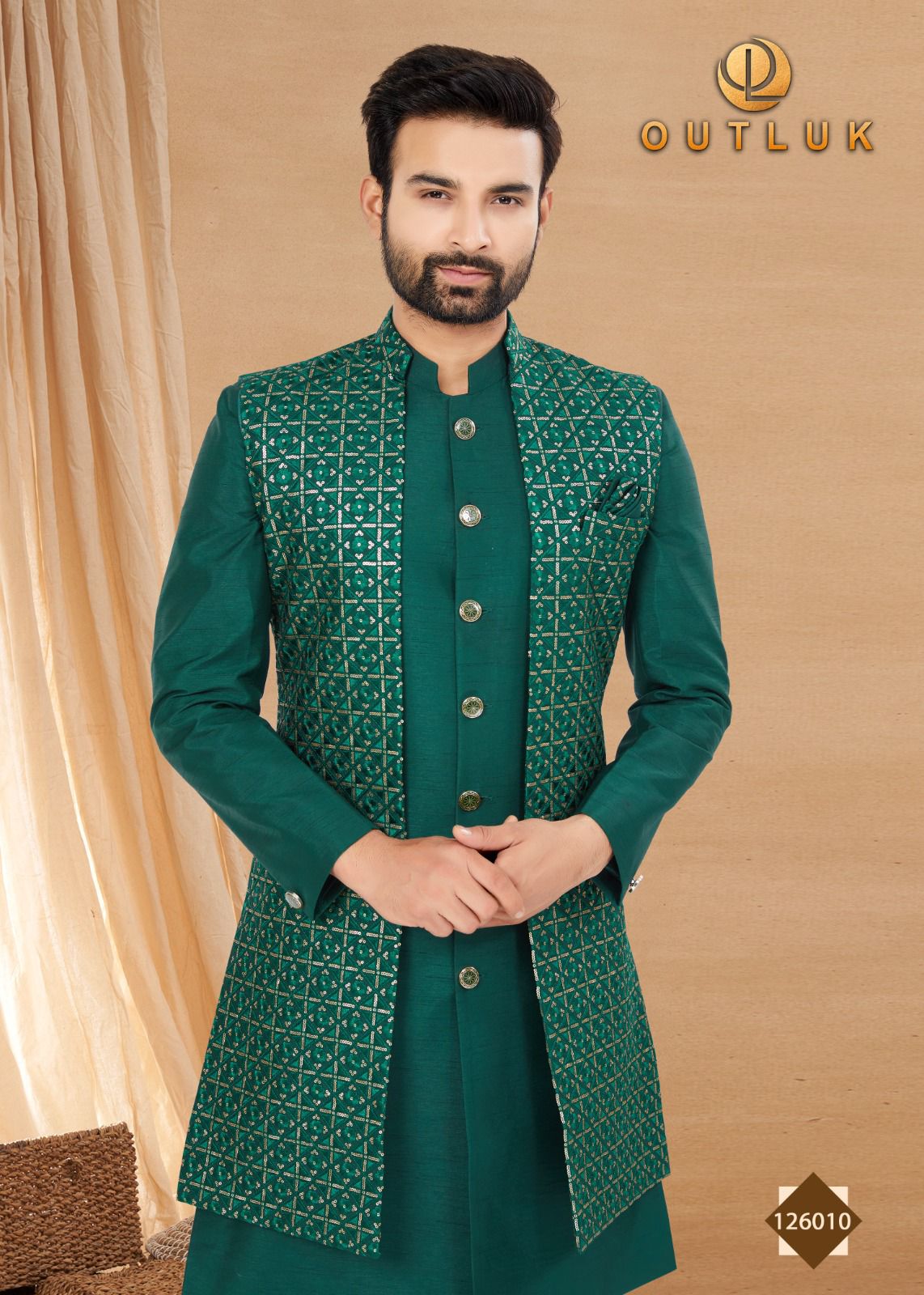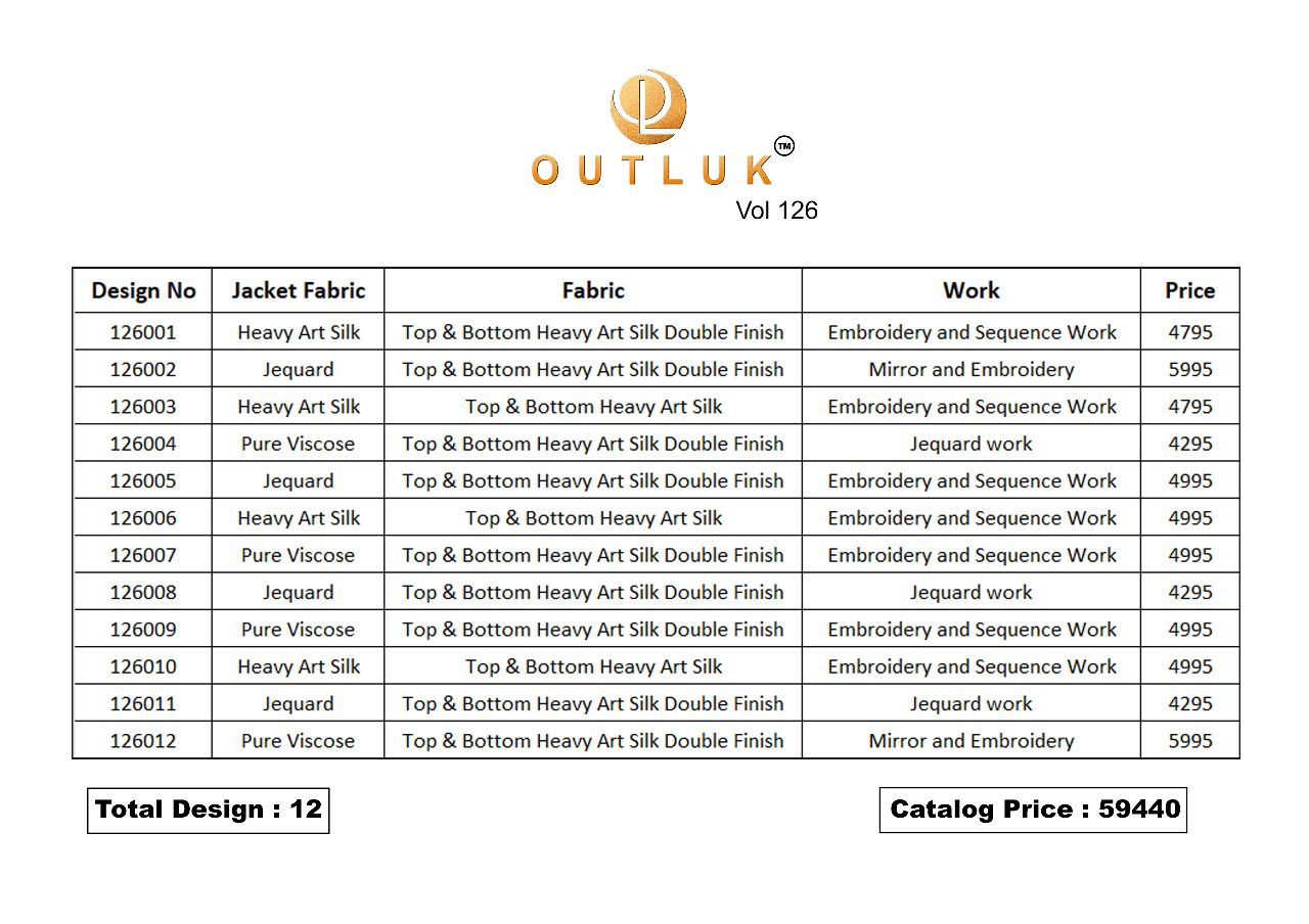 Buy Online Outluk Premium Series Vol 126 Outluk Pure Art Silk Kurta Jacket Indo Western Wedding Collection 12 Pcs of Full Catalogue at Wholesale Price. Looking for Outluk Premium Series Vol 126 Outluk Pure Art Silk Kurta Jacket Indo Western Wedding Collection Full Catalouge at Best Price? Buy Now Outluk Premium Series Vol 126 Outluk Pure Art Silk Kurta Jacket Indo Western Wedding Collection at Wholesale Rate of Rs 0 with Total 12 Pcs from authroized dealer and supplier of Brand. Cost of Each piece is just only Rs 0 which is very low and affordable price to resale the product in your retail store ,This is Surat based Wholesale Supplier & Dealer of Brand. Click on Brand name to Know more about Brand's products.Call or Whatsapp on 9898838984 for booking or enquiry