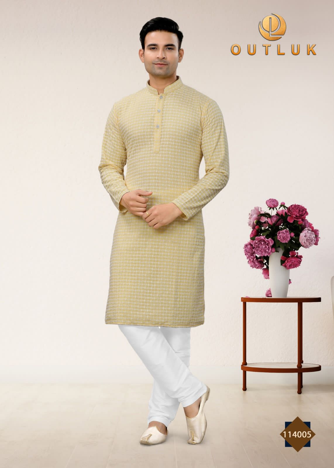 Buy Online Outluk Vol 114 Lakhnowi Work Kurta Pajama 5 Pcs of Full Catalogue at Wholesale Price. Looking for Outluk Vol 114 Lakhnowi Work Kurta Pajama Full Catalouge at Best Price? Buy Now Outluk Vol 114 Lakhnowi Work Kurta Pajama at Wholesale Rate of Rs 4975 with Total 5 Pcs from authroized dealer and supplier of Brand. Cost of Each piece is just only Rs 995 which is very low and affordable price to resale the product in your retail store ,This is Surat based Wholesale Supplier & Dealer of Brand. Click on Brand name to Know more about Brand's products.Call or Whatsapp on 9898838984 for booking or enquiry