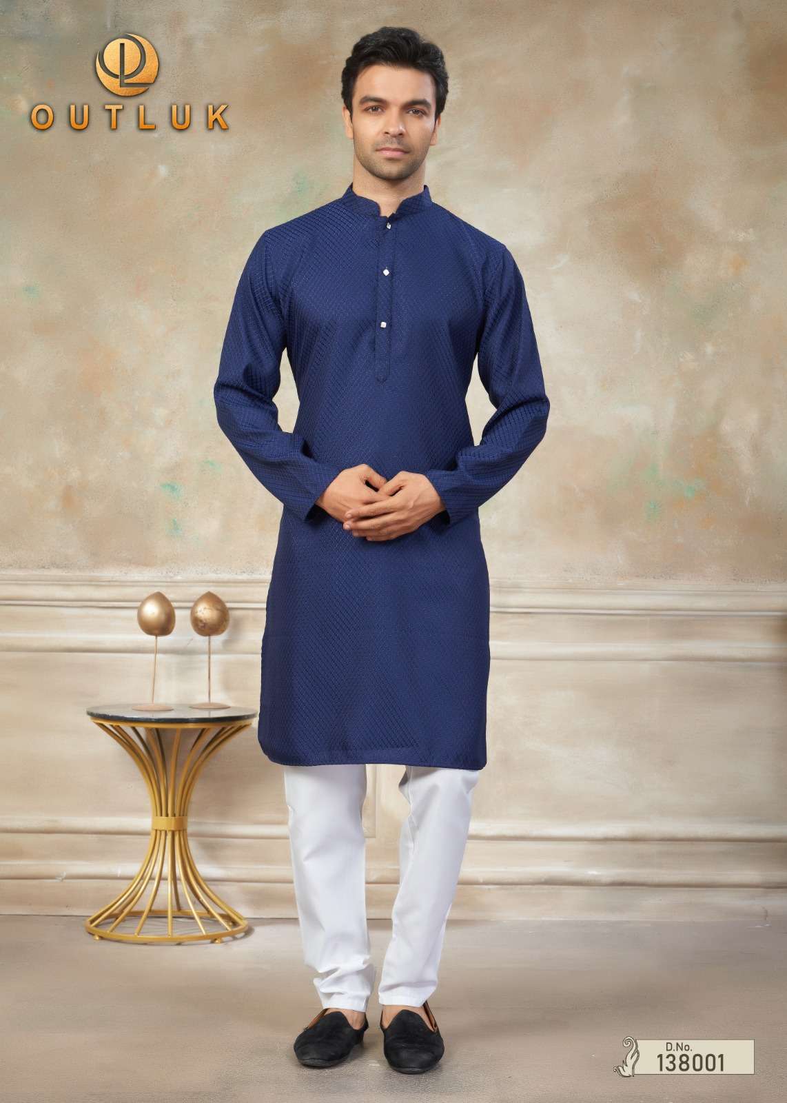 *Outluk Added New Designs in Weaving Sifly Work Kurta Pajama*