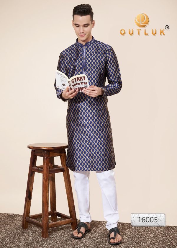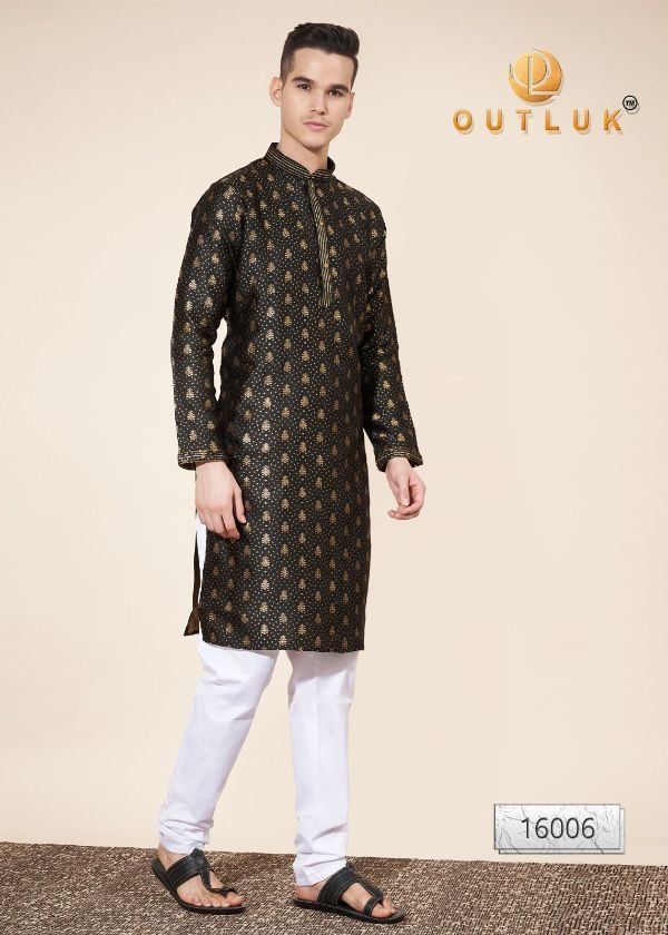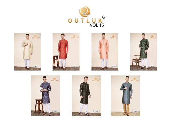 Buy Online Outluk Wedding Collection Vol 16 New Designs In Pintex Work Jequard Kurta Pajama 7 Pcs of Full Catalogue at Wholesale Price. Looking for Outluk Wedding Collection Vol 16 New Designs In Pintex Work Jequard Kurta Pajama Full Catalouge at Best Price? Buy Now Outluk Wedding Collection Vol 16 New Designs In Pintex Work Jequard Kurta Pajama at Wholesale Rate of Rs 6965 with Total 7 Pcs from authroized dealer and supplier of Brand. Cost of Each piece is just only Rs 995 which is very low and affordable price to resale the product in your retail store ,This is Surat based Wholesale Supplier & Dealer of Brand. Click on Brand name to Know more about Brand's products.Call or Whatsapp on 9898838984 for booking or enquiry