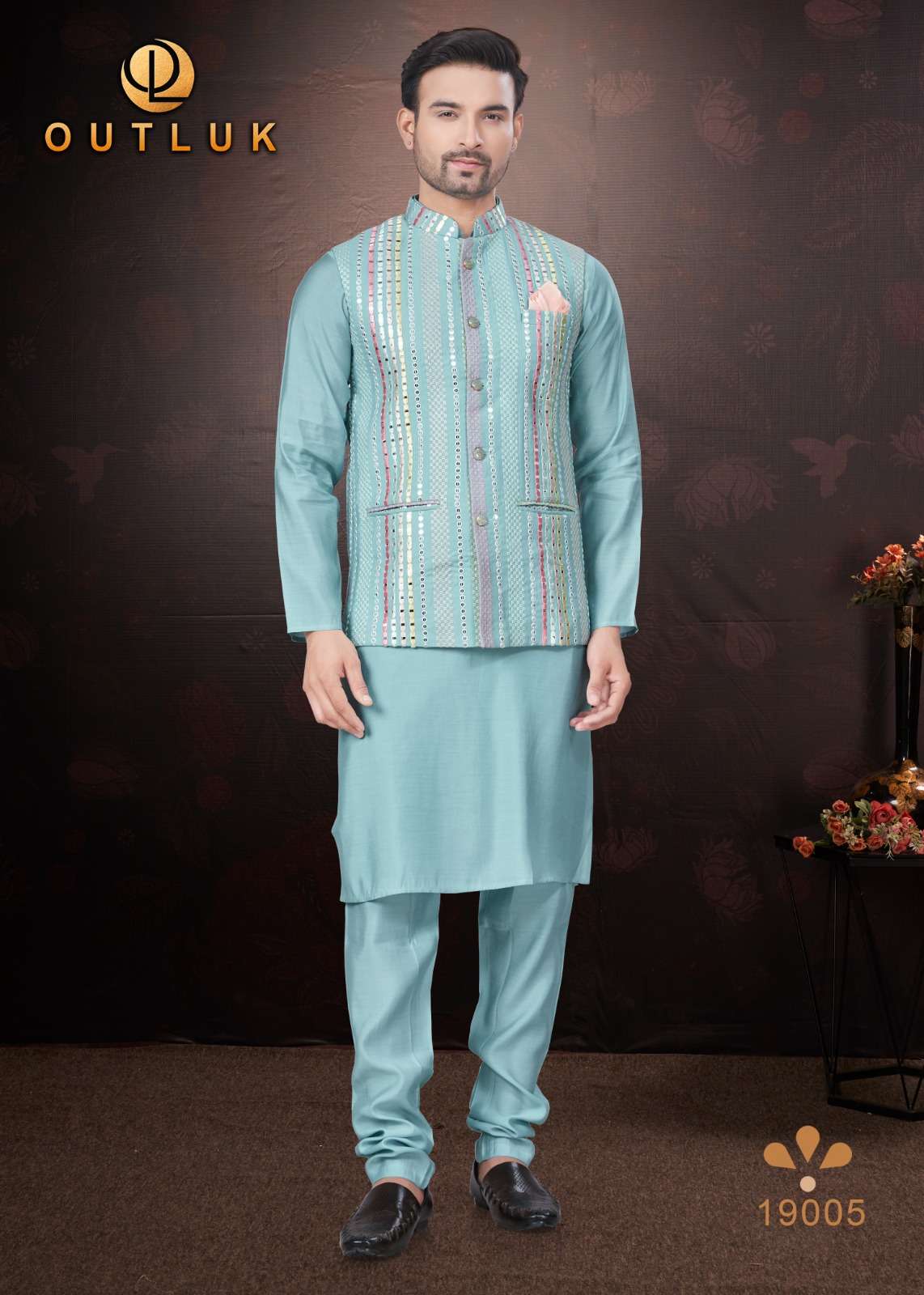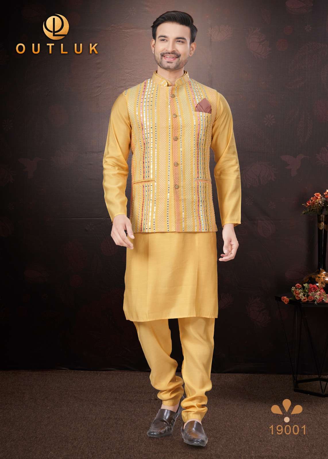 Buy Online Outluk Wedding Collection Vol 19 Pure Silk kurta collection manufacturer surat 9 Pcs of Full Catalogue at Wholesale Price. Looking for Outluk Wedding Collection Vol 19 Pure Silk kurta collection manufacturer surat Full Catalouge at Best Price? Buy Now Outluk Wedding Collection Vol 19 Pure Silk kurta collection manufacturer surat at Wholesale Rate of Rs 16155 with Total 9 Pcs from authroized dealer and supplier of OUTLUK Brand. Cost of Each piece is just only Rs 1795 which is very low and affordable price to resale the product in your retail store ,This is Surat based Wholesale Supplier & Dealer of OUTLUK Brand. Click on Brand name to Know more about OUTLUK Brand's products.Call or Whatsapp on 9898838984 for booking or enquiry