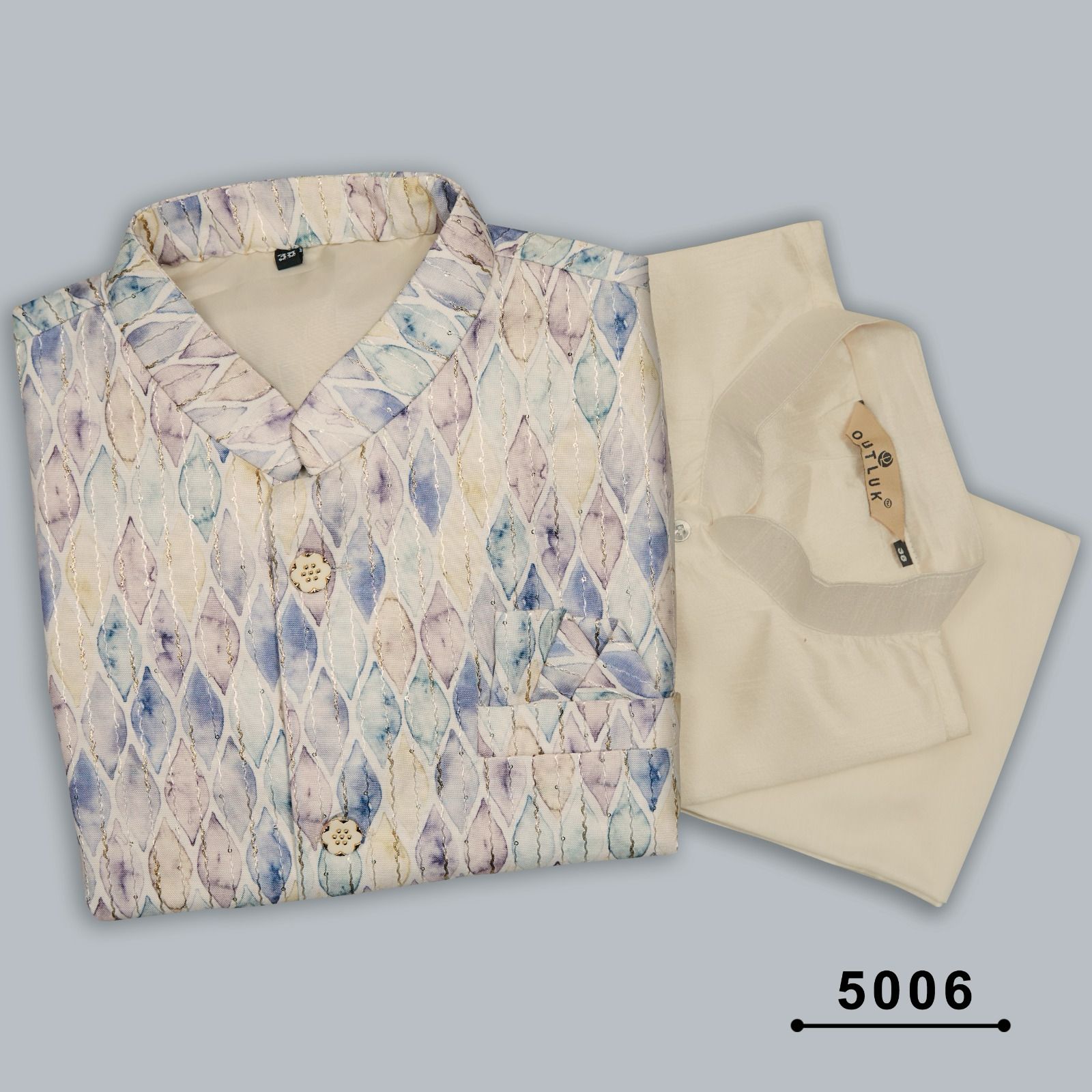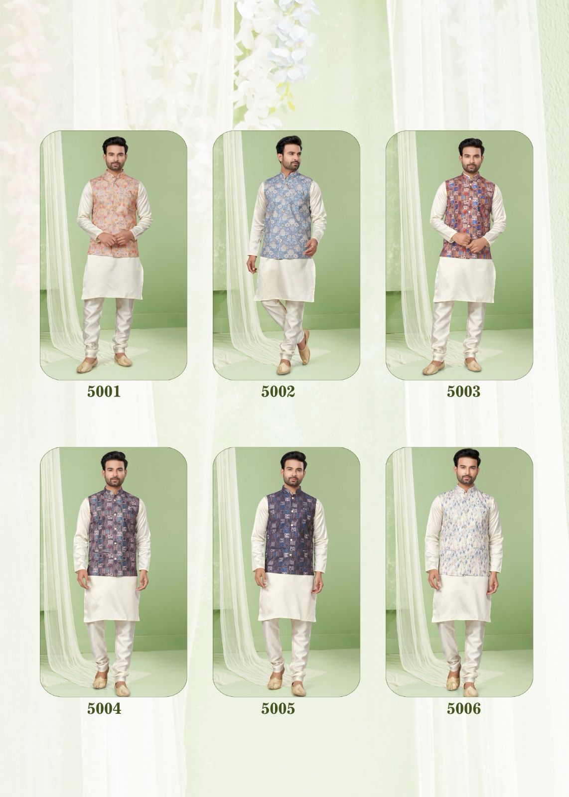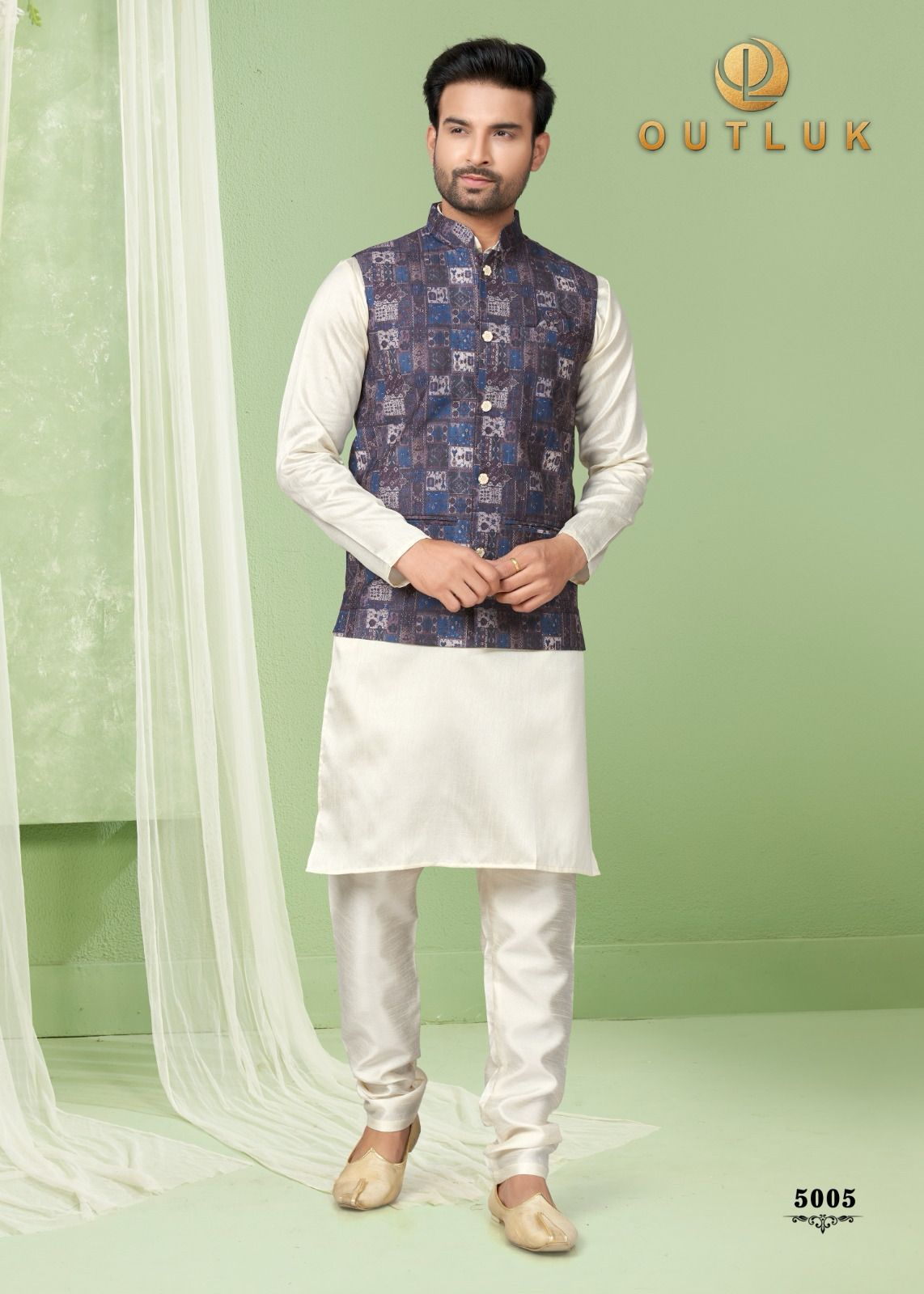 Buy Online Outluk Wedding Collection Vol 5 Modi Jacket Kurta Pajama 6 Pcs of Full Catalogue at Wholesale Price. Looking for Outluk Wedding Collection Vol 5 Modi Jacket Kurta Pajama Full Catalouge at Best Price? Buy Now Outluk Wedding Collection Vol 5 Modi Jacket Kurta Pajama at Wholesale Rate of Rs 8970 with Total 6 Pcs from authroized dealer and supplier of Brand. Cost of Each piece is just only Rs 1495 which is very low and affordable price to resale the product in your retail store ,This is Surat based Wholesale Supplier & Dealer of Brand. Click on Brand name to Know more about Brand's products.Call or Whatsapp on 9898838984 for booking or enquiry