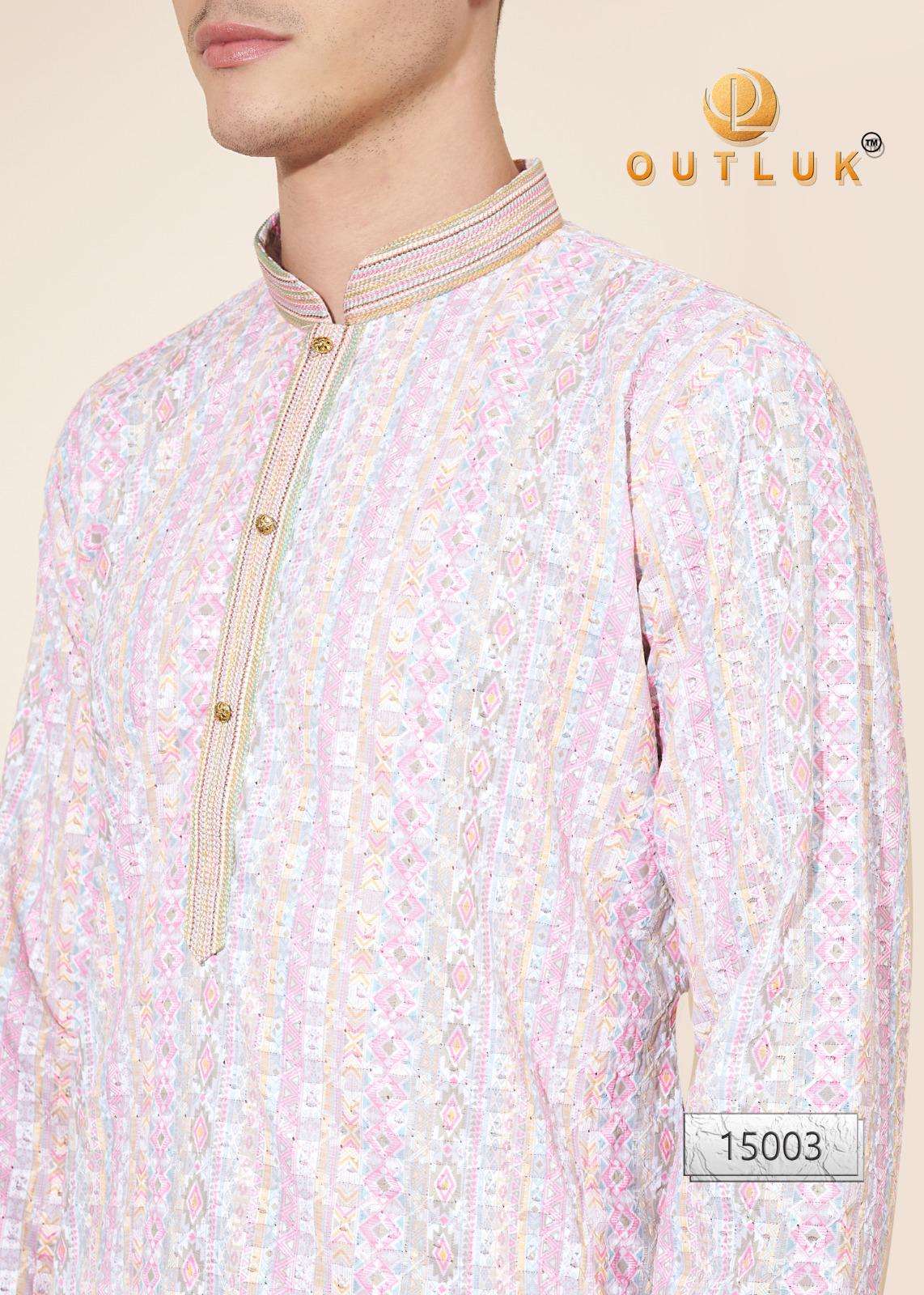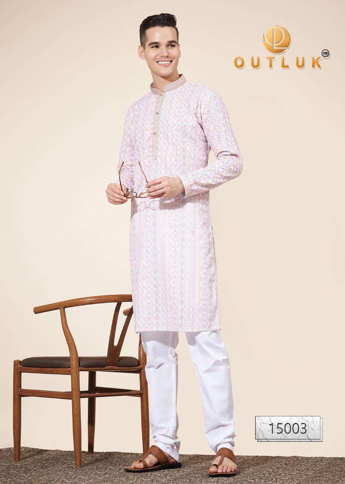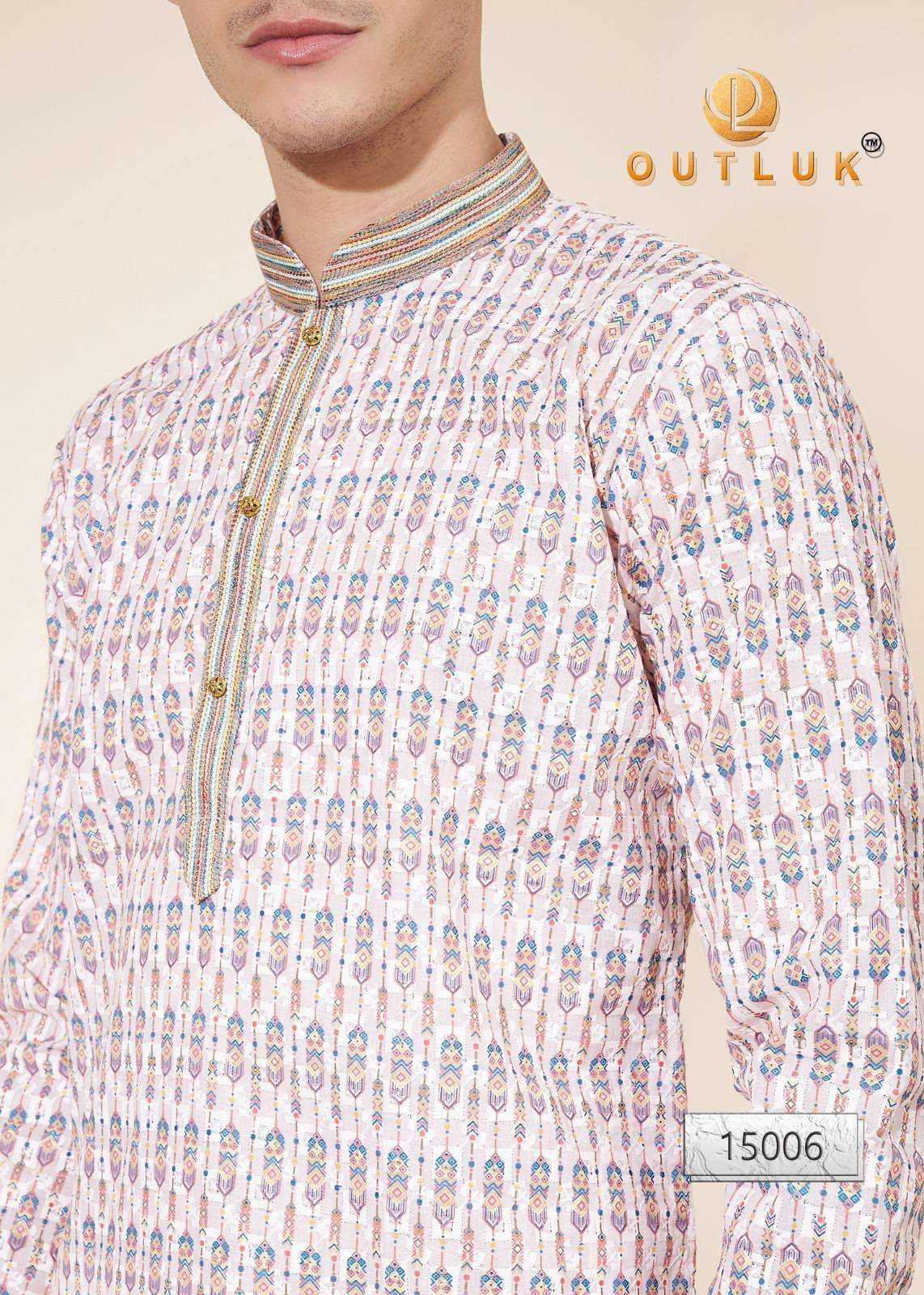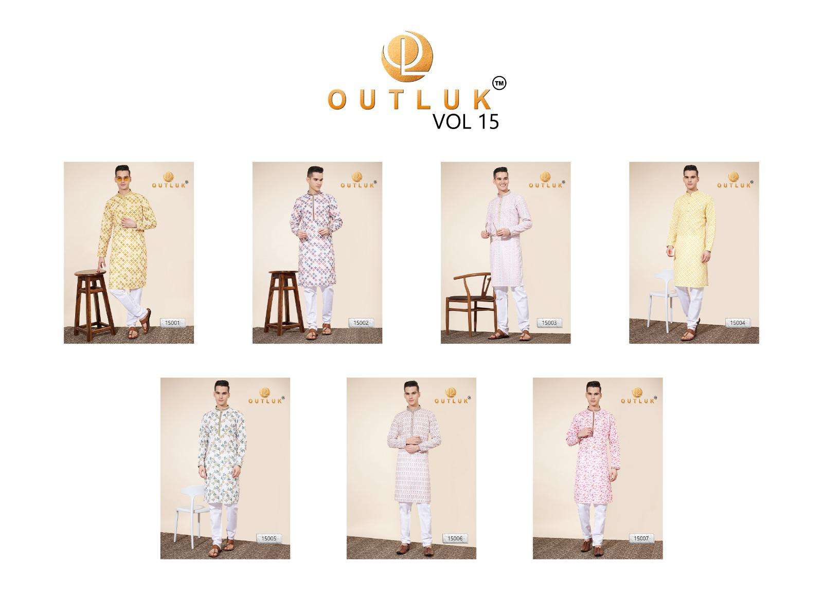 Buy Online Outluk Wedding ColleVction Vol 15 BY Outluk Added Wedding Collection Series New Designs in Pintex lakhnowi Work Kurta Pajama 7 Pcs of Full Catalogue at Wholesale Price. Looking for Outluk Wedding ColleVction Vol 15 BY Outluk Added Wedding Collection Series New Designs in Pintex lakhnowi Work Kurta Pajama Full Catalouge at Best Price? Buy Now Outluk Wedding ColleVction Vol 15 BY Outluk Added Wedding Collection Series New Designs in Pintex lakhnowi Work Kurta Pajama at Wholesale Rate of Rs 8750 with Total 7 Pcs from authroized dealer and supplier of OUTLUK Brand. Cost of Each piece is just only Rs 1250 which is very low and affordable price to resale the product in your retail store ,This is Surat based Wholesale Supplier & Dealer of OUTLUK Brand. Click on Brand name to Know more about OUTLUK Brand's products.Call or Whatsapp on 9898838984 for booking or enquiry