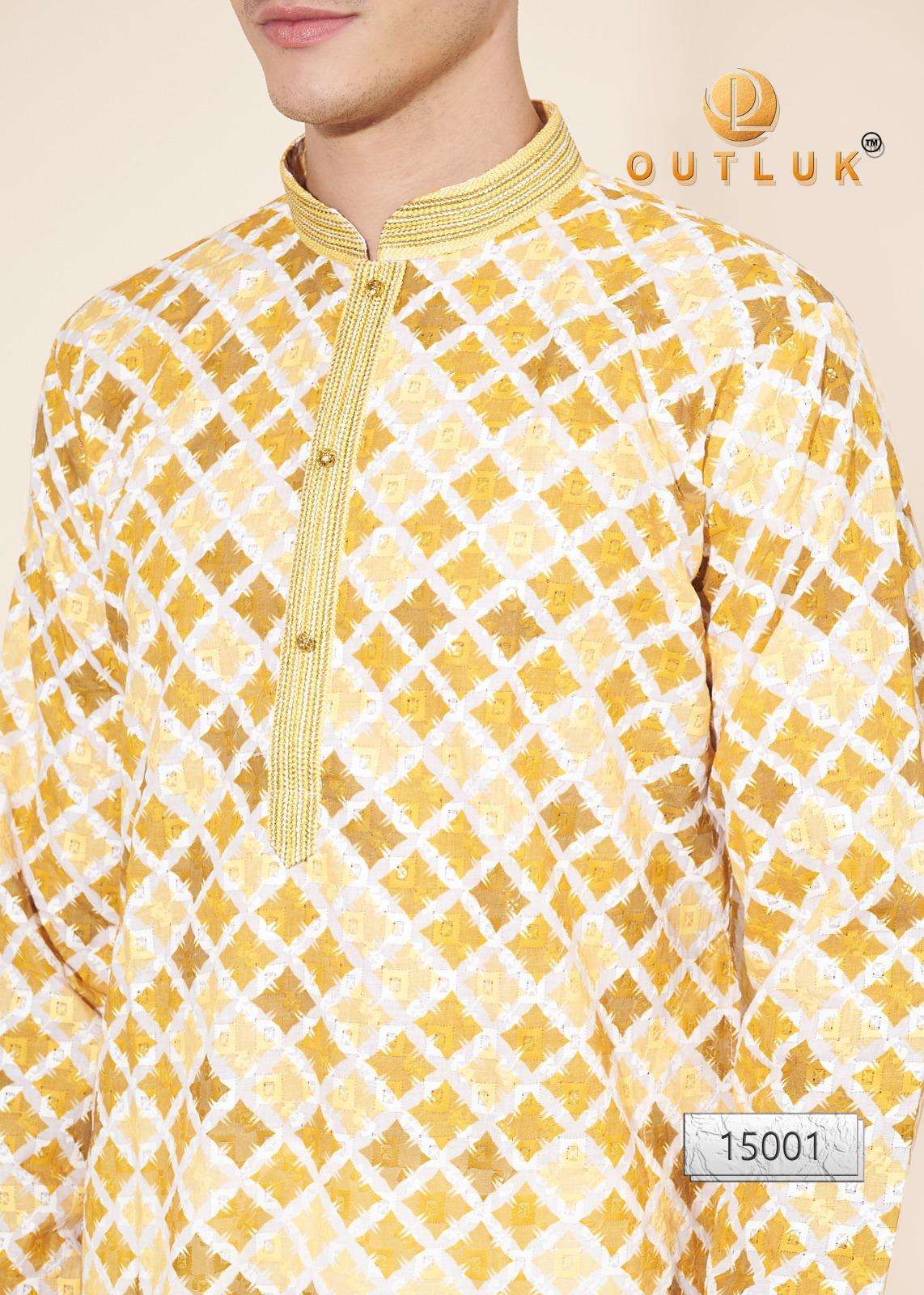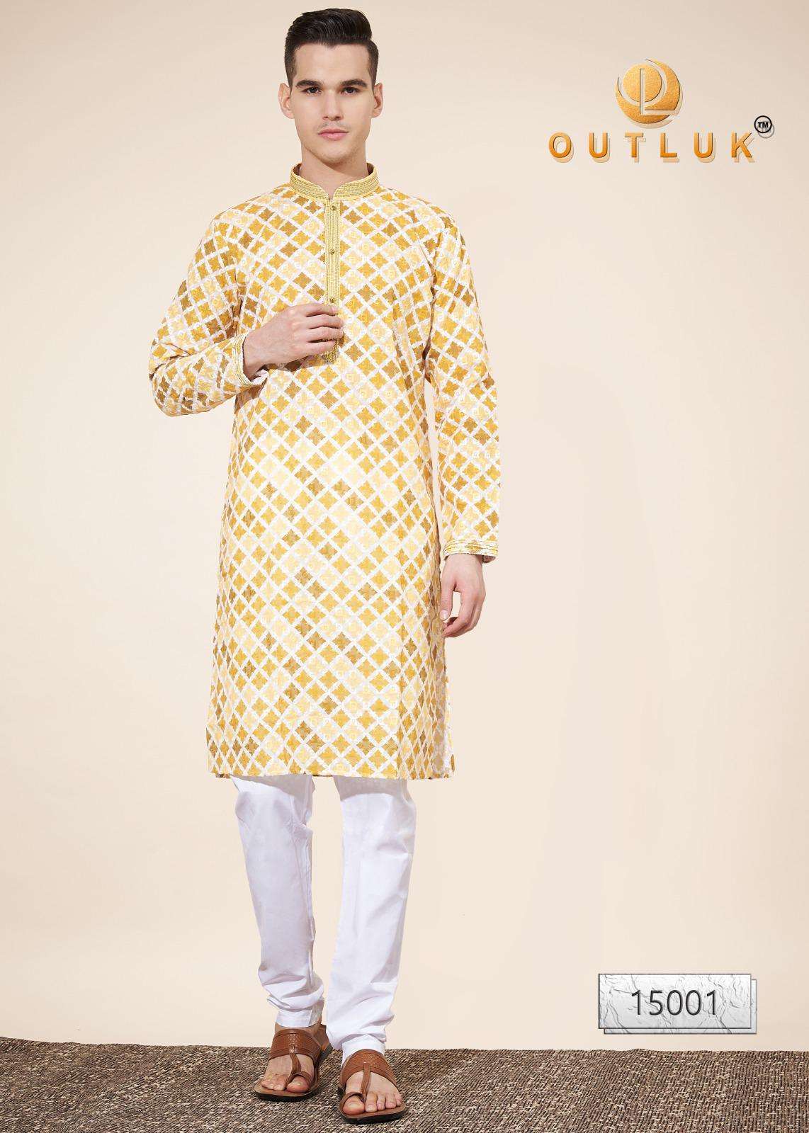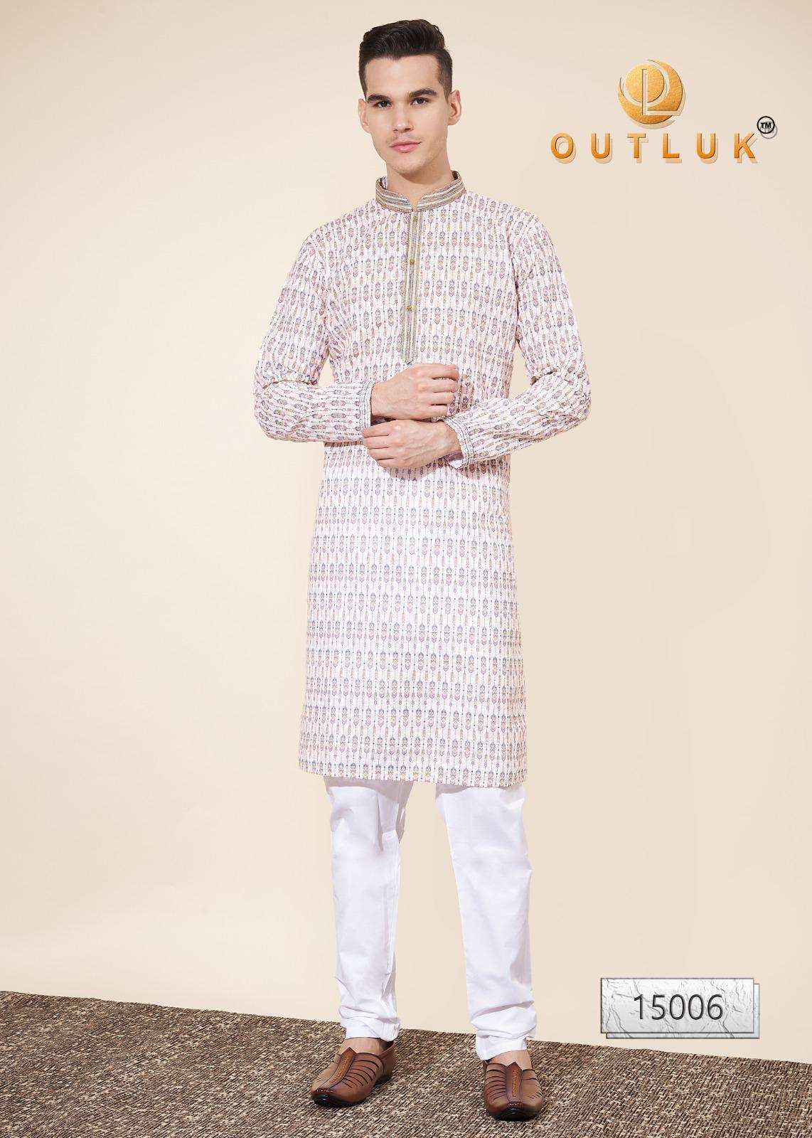 Buy Online Outluk Wedding ColleVction Vol 15 BY Outluk Added Wedding Collection Series New Designs in Pintex lakhnowi Work Kurta Pajama 7 Pcs of Full Catalogue at Wholesale Price. Looking for Outluk Wedding ColleVction Vol 15 BY Outluk Added Wedding Collection Series New Designs in Pintex lakhnowi Work Kurta Pajama Full Catalouge at Best Price? Buy Now Outluk Wedding ColleVction Vol 15 BY Outluk Added Wedding Collection Series New Designs in Pintex lakhnowi Work Kurta Pajama at Wholesale Rate of Rs 8750 with Total 7 Pcs from authroized dealer and supplier of OUTLUK Brand. Cost of Each piece is just only Rs 1250 which is very low and affordable price to resale the product in your retail store ,This is Surat based Wholesale Supplier & Dealer of OUTLUK Brand. Click on Brand name to Know more about OUTLUK Brand's products.Call or Whatsapp on 9898838984 for booking or enquiry