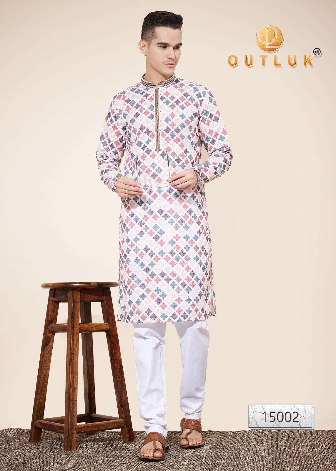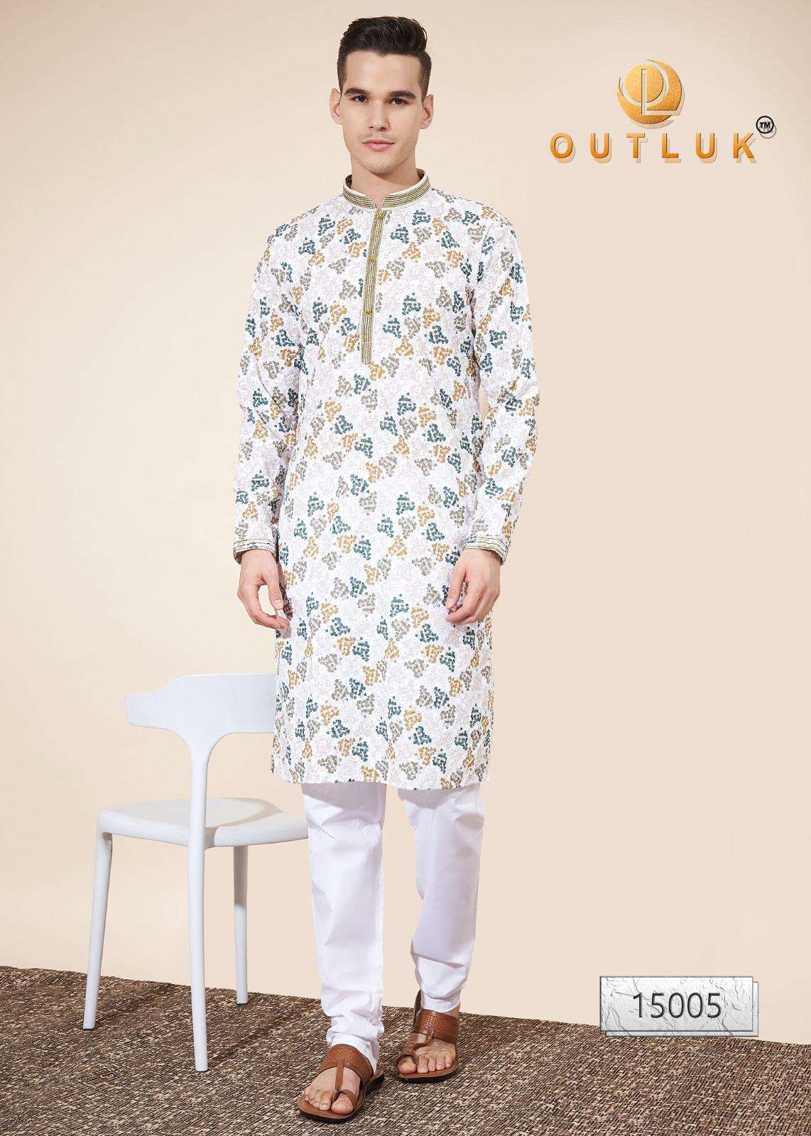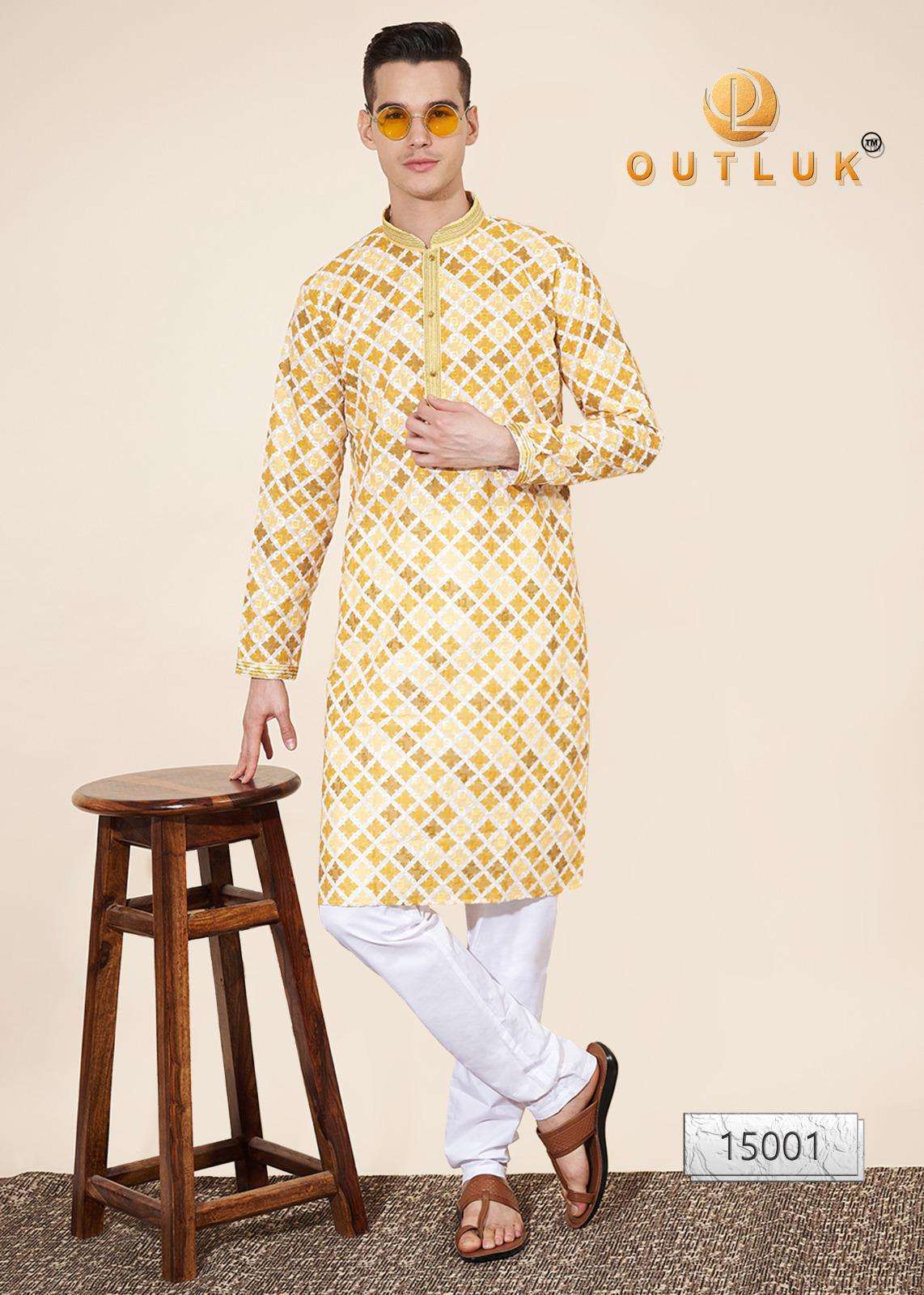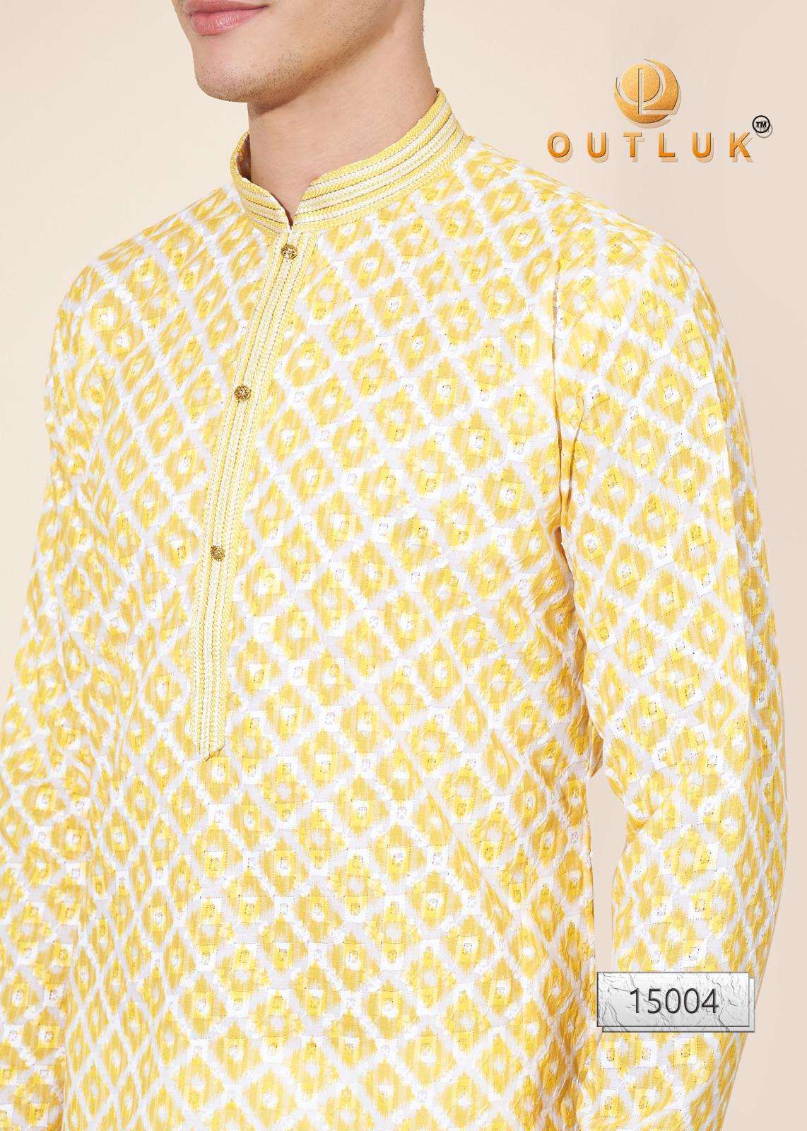 Buy Online Outluk Wedding ColleVction Vol 15 BY Outluk Added Wedding Collection Series New Designs in Pintex lakhnowi Work Kurta Pajama 7 Pcs of Full Catalogue at Wholesale Price. Looking for Outluk Wedding ColleVction Vol 15 BY Outluk Added Wedding Collection Series New Designs in Pintex lakhnowi Work Kurta Pajama Full Catalouge at Best Price? Buy Now Outluk Wedding ColleVction Vol 15 BY Outluk Added Wedding Collection Series New Designs in Pintex lakhnowi Work Kurta Pajama at Wholesale Rate of Rs 8750 with Total 7 Pcs from authroized dealer and supplier of OUTLUK Brand. Cost of Each piece is just only Rs 1250 which is very low and affordable price to resale the product in your retail store ,This is Surat based Wholesale Supplier & Dealer of OUTLUK Brand. Click on Brand name to Know more about OUTLUK Brand's products.Call or Whatsapp on 9898838984 for booking or enquiry