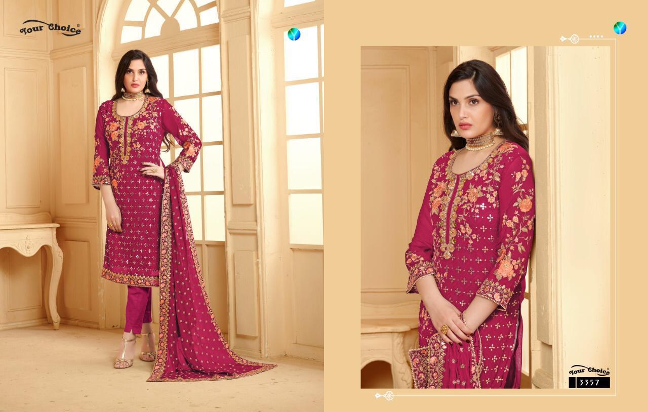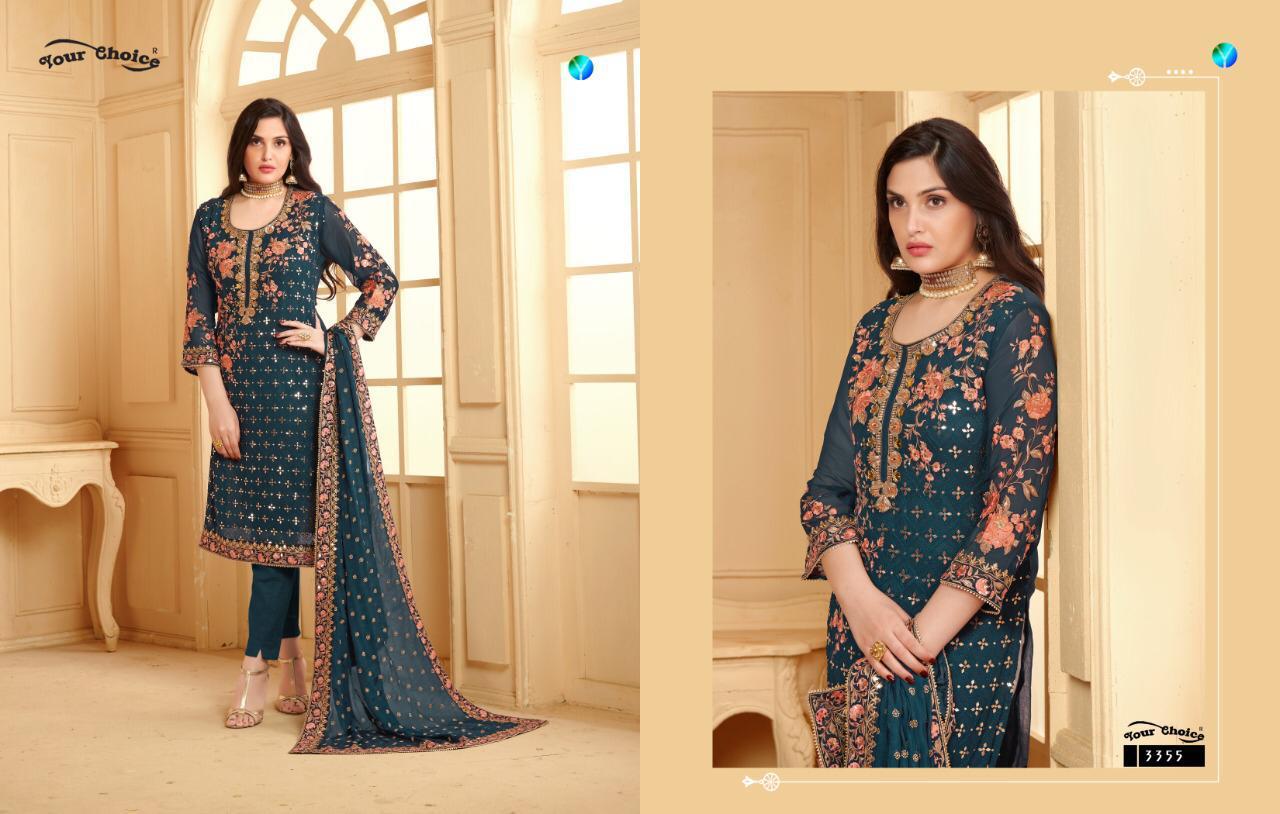 Buy Online Oye Kudi 2 By Your Choice Series 3354 To 3357 Designer Party Wear Suits Wholesale Supplier Gujarat 4 Pcs of Full Catalogue at Wholesale Price. Looking for Oye Kudi 2 By Your Choice Series 3354 To 3357 Designer Party Wear Suits Wholesale Supplier Gujarat Full Catalouge at Best Price? Buy Now Oye Kudi 2 By Your Choice Series 3354 To 3357 Designer Party Wear Suits Wholesale Supplier Gujarat at Wholesale Rate of Rs 6780 with Total 4 Pcs from authroized dealer and supplier of YOUR CHOICE Brand. Cost of Each piece is just only Rs 1695 which is very low and affordable price to resale the product in your retail store ,This is Surat based Wholesale Supplier & Dealer of YOUR CHOICE Brand. Click on Brand name to Know more about YOUR CHOICE Brand's products.Call or Whatsapp on 9898838984 for booking or enquiry