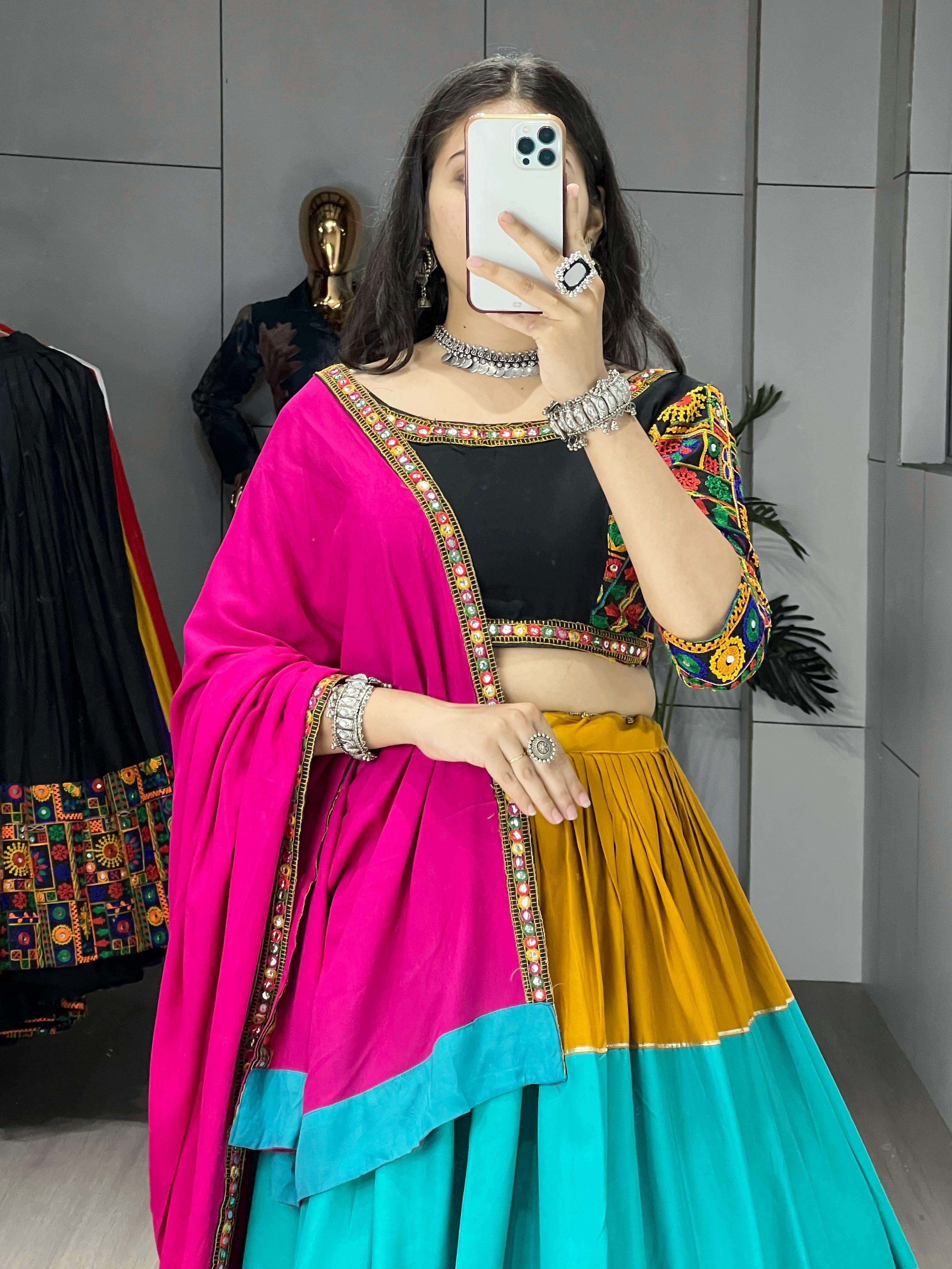 #navratri2025 #designerlehenga #navratricollection #chaniyacholi #garbacholi #mirrorwork #mirrorworklehenga #usa #canada #fiji #gujarat #share #latestdesign #navratrioutfit #multicolorlehenga #lehengaset #printedlehenga #multicolor