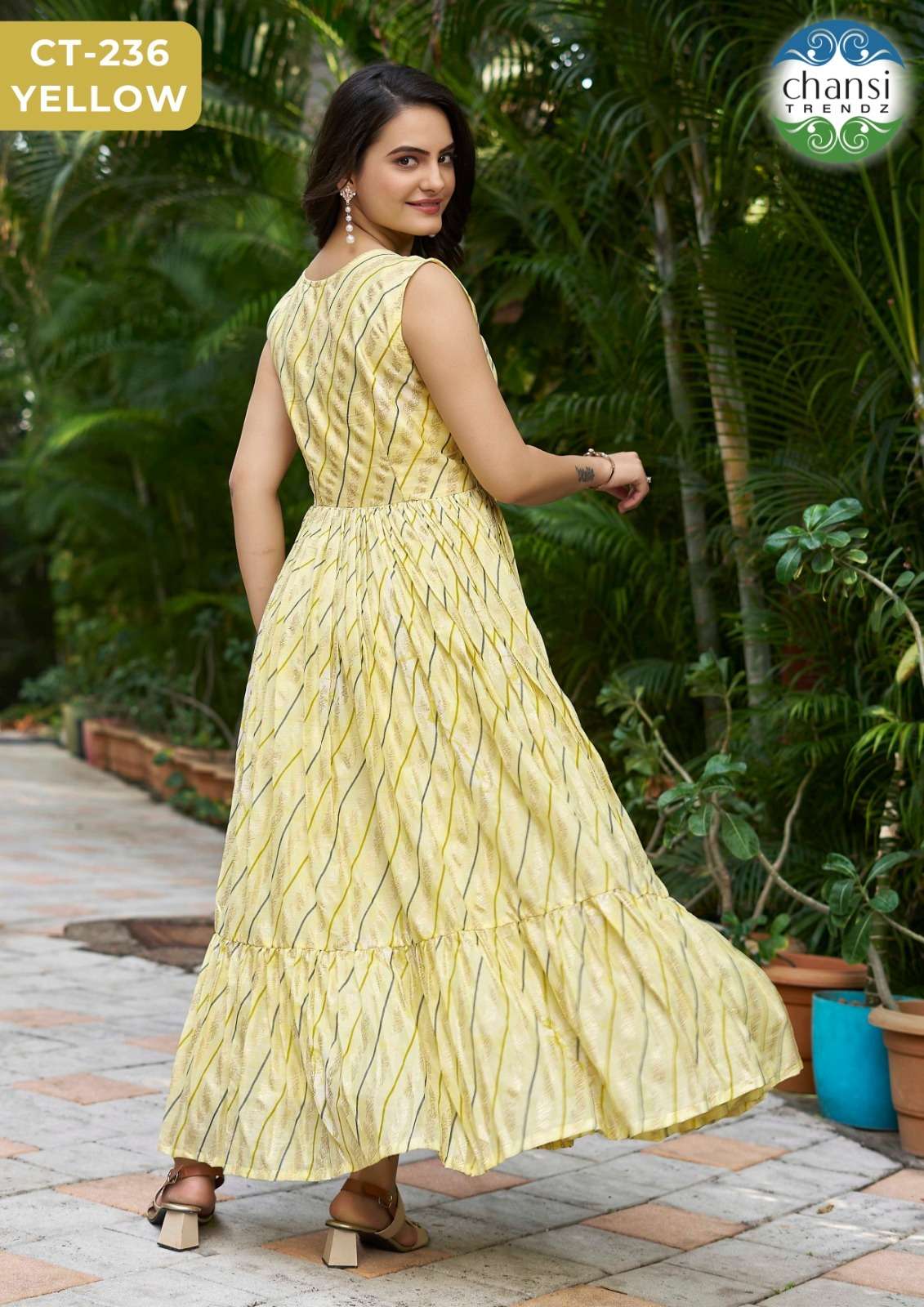 Buy Online PADMAKSHI CT 236 by CHANSI TRENDZ gown collection manufacturers surat 2 Pcs of Full Catalogue at Wholesale Price. Looking for PADMAKSHI CT 236 by CHANSI TRENDZ gown collection manufacturers surat Full Catalouge at Best Price? Buy Now PADMAKSHI CT 236 by CHANSI TRENDZ gown collection manufacturers surat at Wholesale Rate of Rs 1138 with Total 2 Pcs from authroized dealer and supplier of BRAND'S Brand. Cost of Each piece is just only Rs 569 which is very low and affordable price to resale the product in your retail store ,This is Surat based Wholesale Supplier & Dealer of BRAND'S Brand. Click on Brand name to Know more about BRAND'S Brand's products.Call or Whatsapp on 9898838984 for booking or enquiry