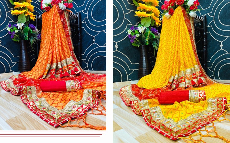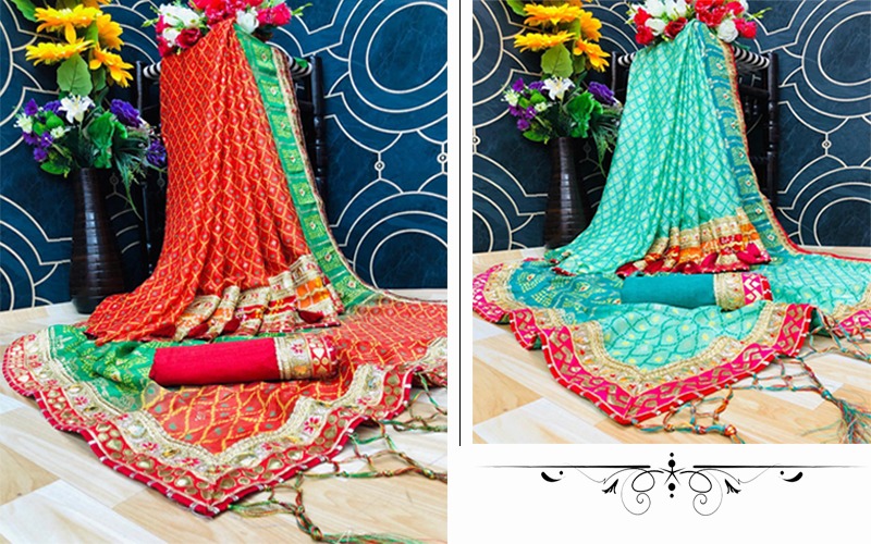 *NEW FANCY HALF-2 FOIL BANDHANI CATALOGUE WITH HEAVY LAHENGA STYLE SKIRT* NAME - *PADMAVAT* PCS - *8 PCS* RATE - 895/- FABRICA - *MOSS CHIFFON* |