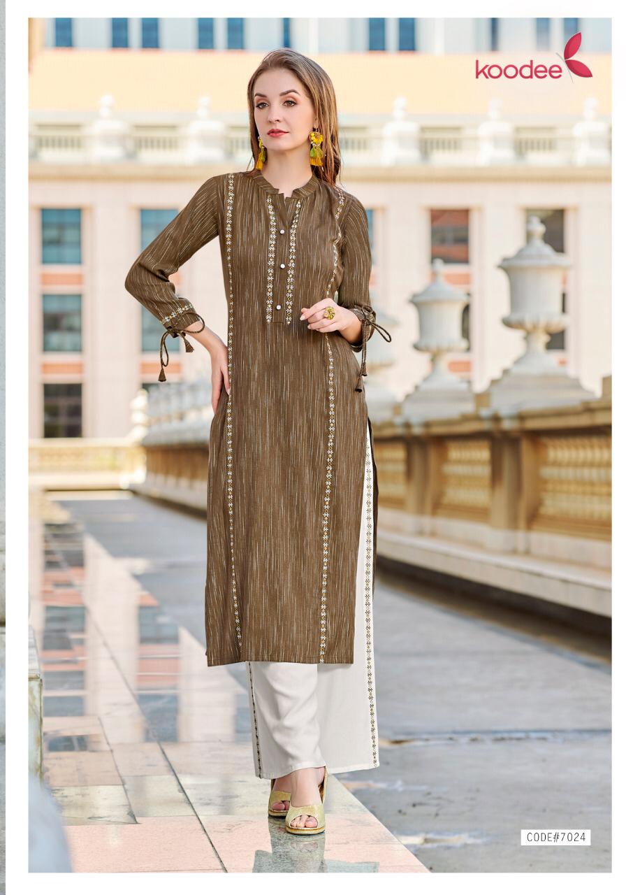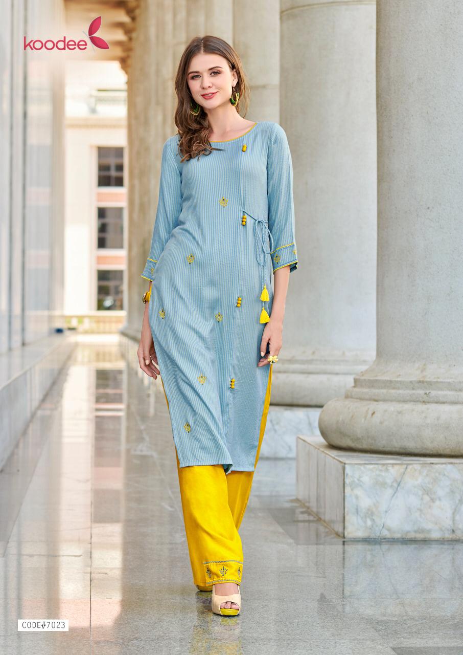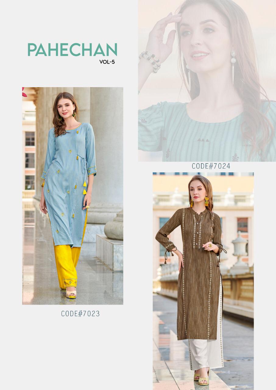 Buy Online Pahechan 5 By Koodee Kurtis With Bottom Wholesale Supplier And Dealer Surat 5 Pcs of Full Catalogue at Wholesale Price. Looking for Pahechan 5 By Koodee Kurtis With Bottom Wholesale Supplier And Dealer Surat Full Catalouge at Best Price? Buy Now Pahechan 5 By Koodee Kurtis With Bottom Wholesale Supplier And Dealer Surat at Wholesale Rate of Rs 3375 with Total 5 Pcs from authroized dealer and supplier of Brand. Cost of Each piece is just only Rs 675 which is very low and affordable price to resale the product in your retail store ,This is Surat based Wholesale Supplier & Dealer of Brand. Click on Brand name to Know more about Brand's products.Call or Whatsapp on 9898838984 for booking or enquiry