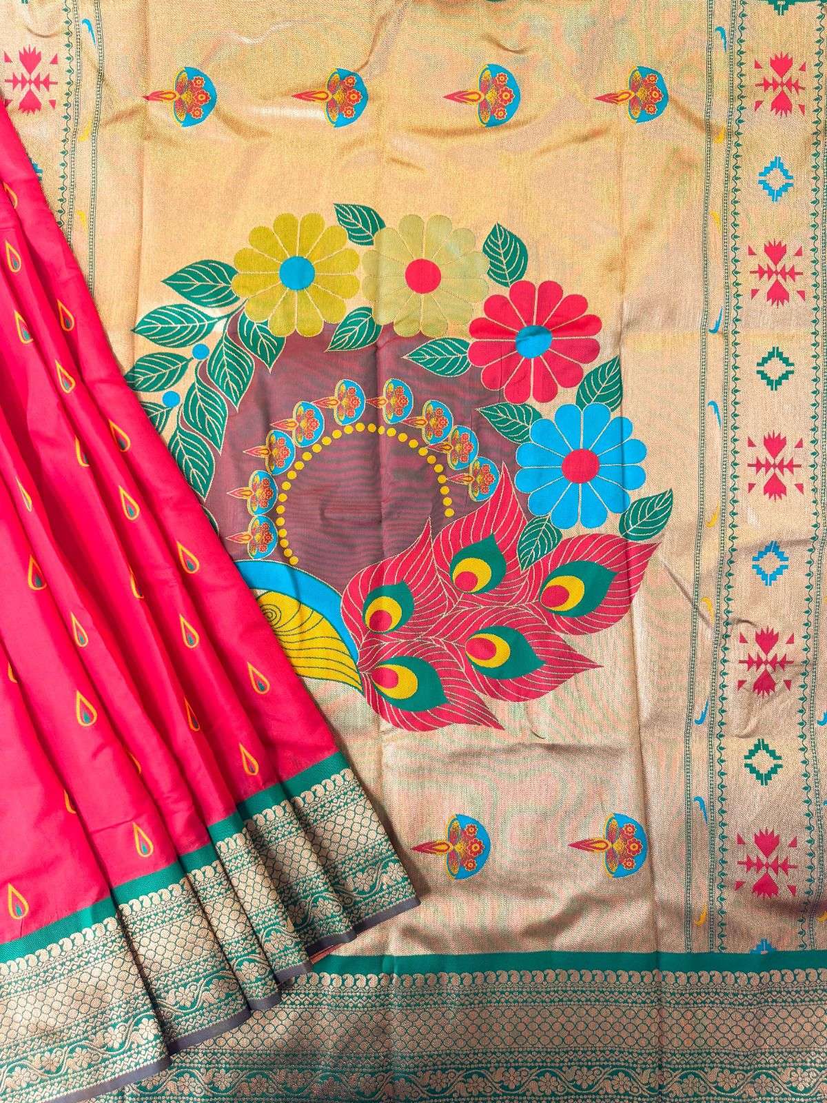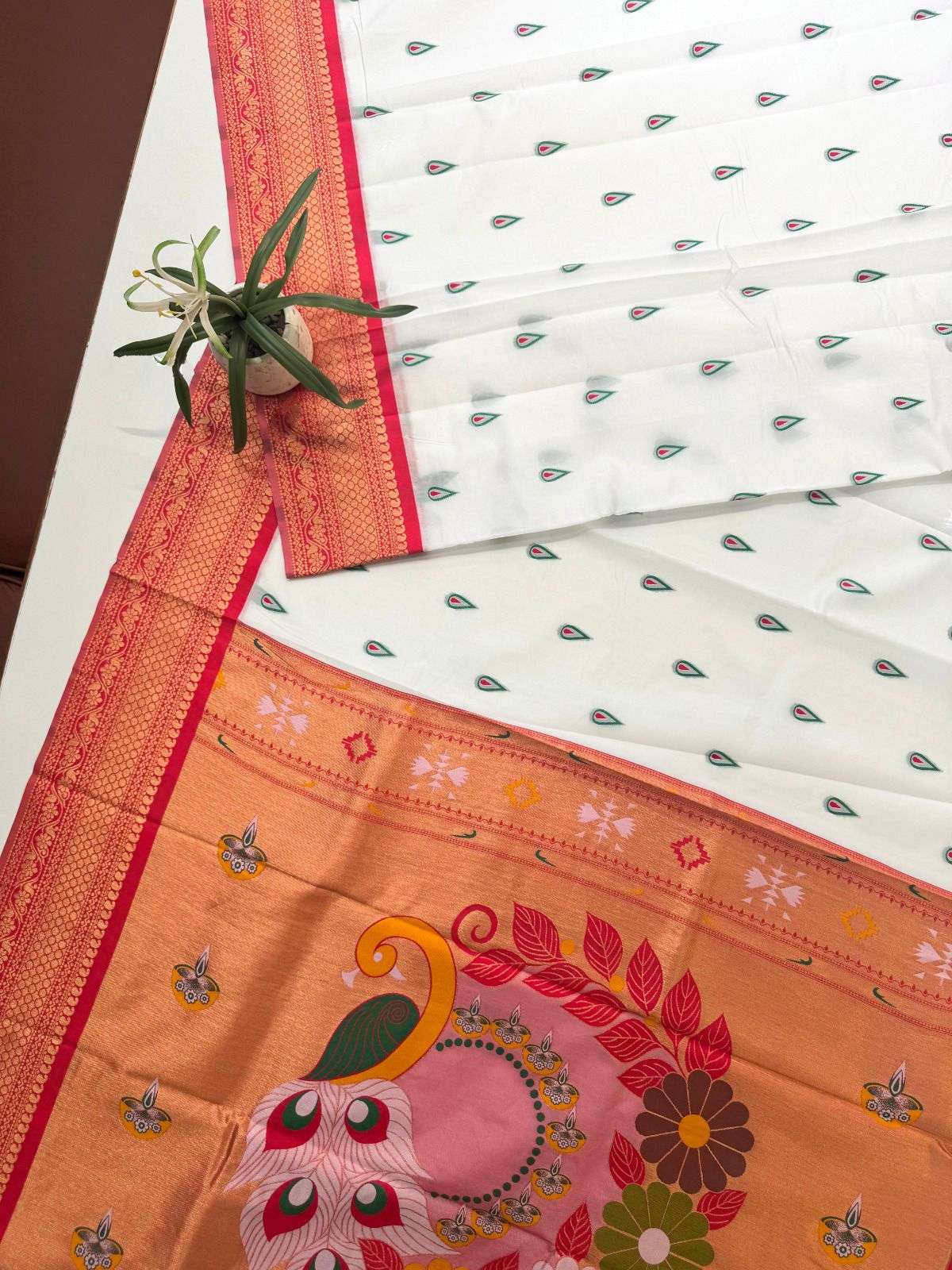 Presenting our New Arrival – Paithani 653, a stunning Banarasi Paithani Soft Silk Saree crafted for timeless elegance. This premium saree showcases a beautiful peacock weaving pattern on the pallu, symbolizing grace and royalty. It is enhanced with a rich contrast zari weaving border that adds a majestic finish. The body is adorned with tilak weaving buttis all over, giving it a classic traditional charm. Comes with a contrast blouse piece to perfectly complement the saree. ✨ Soft & luxurious Banarasi Paithani silk 🛍️ Ready Stock Available Book yours now and drape the beauty of tradition! 🌹 |