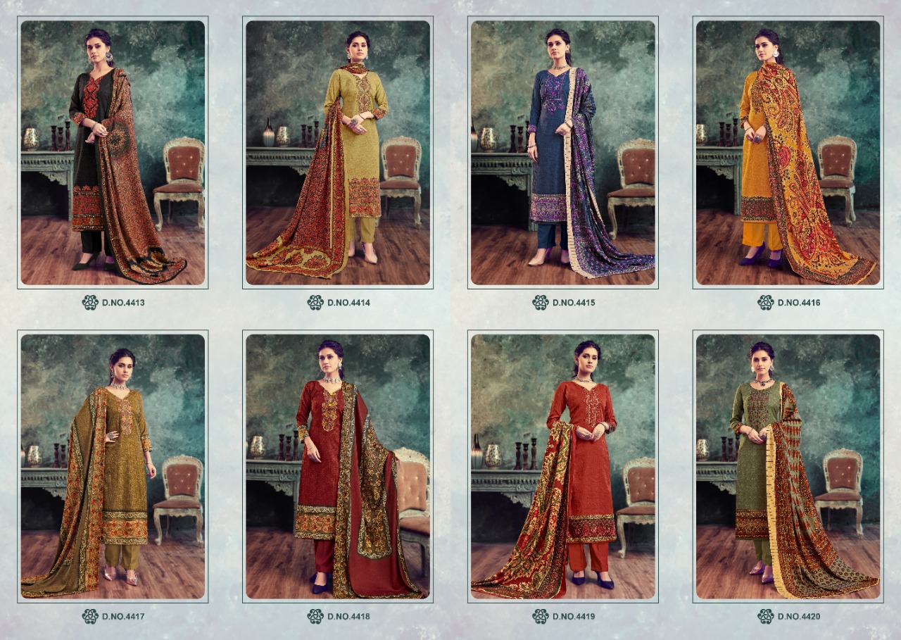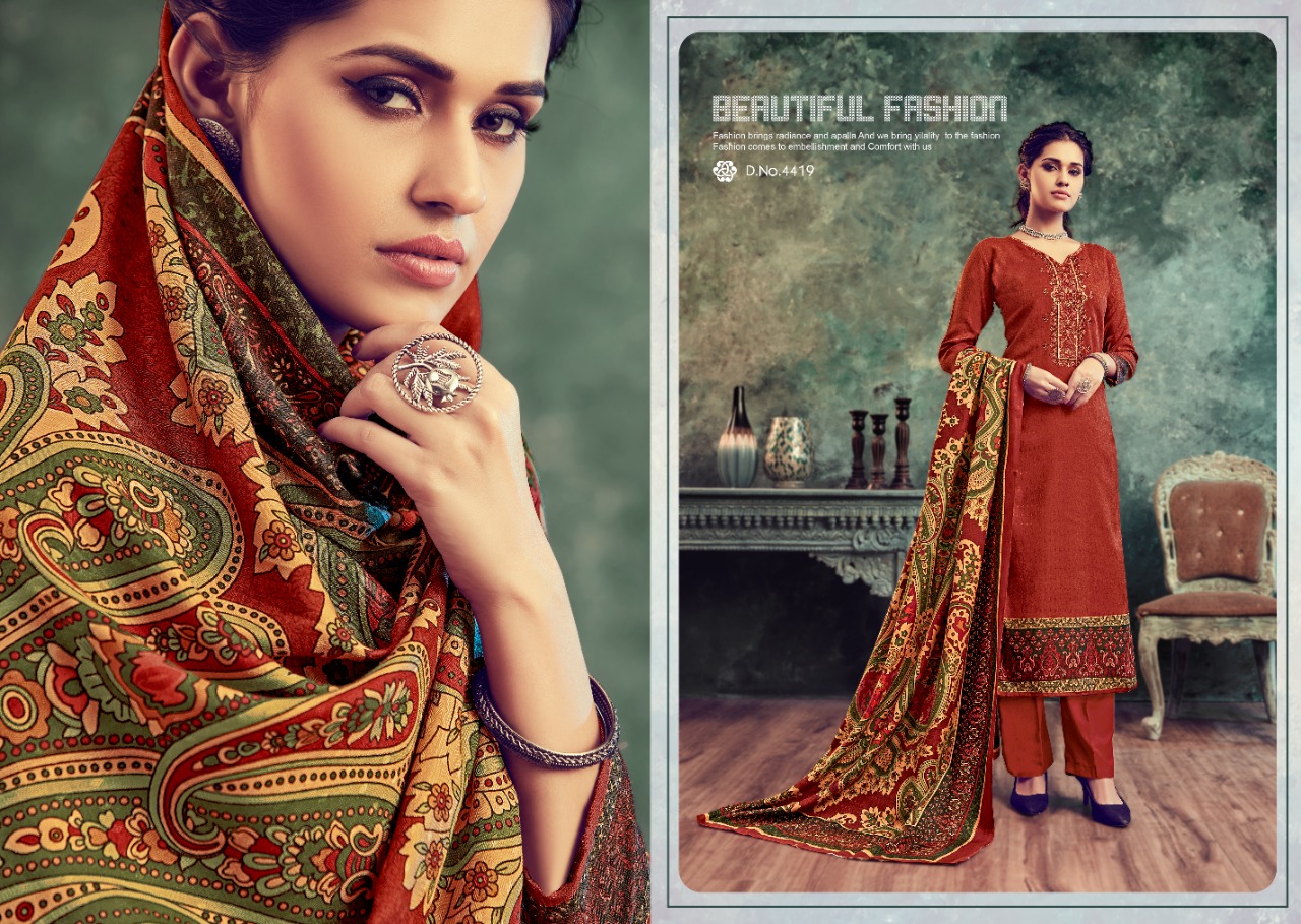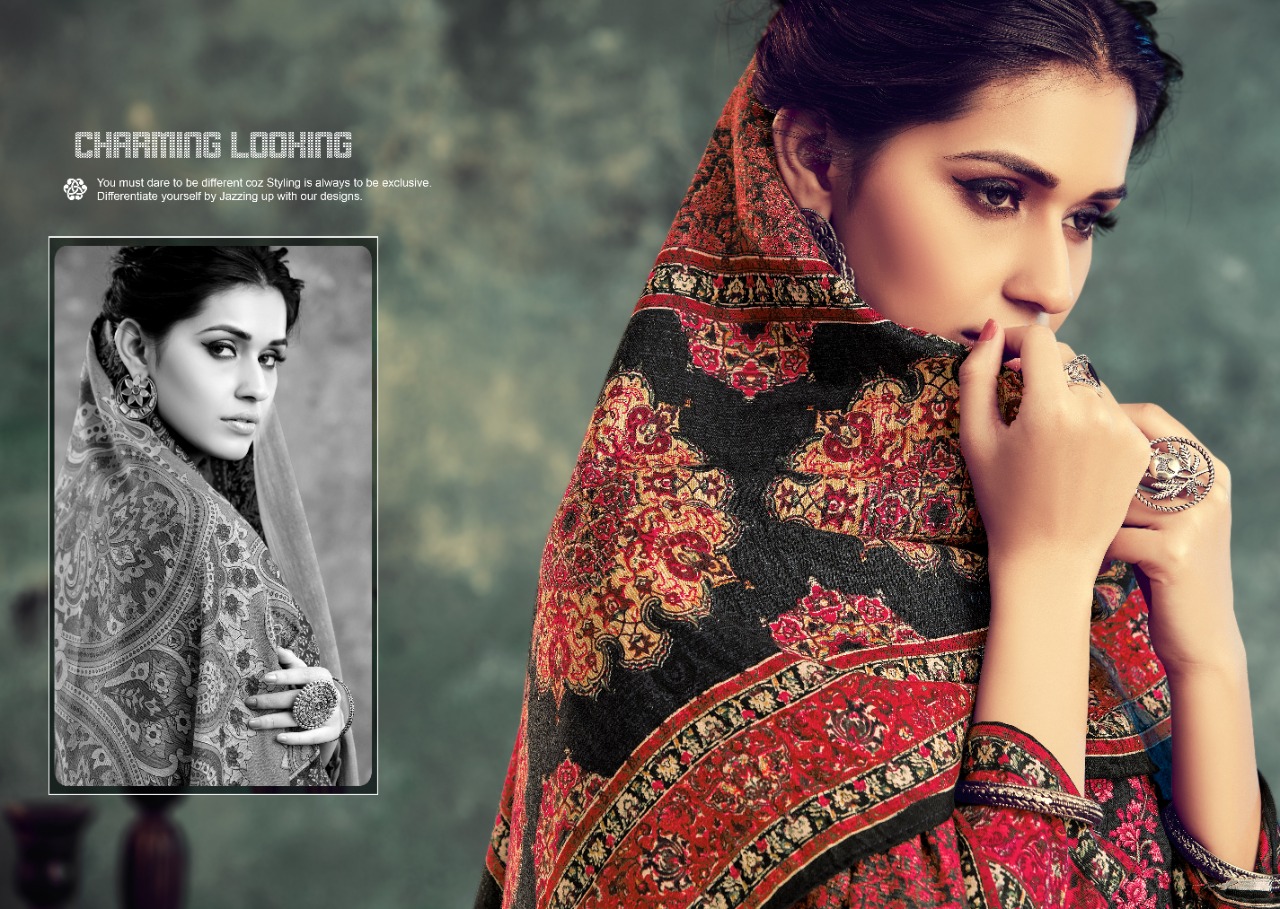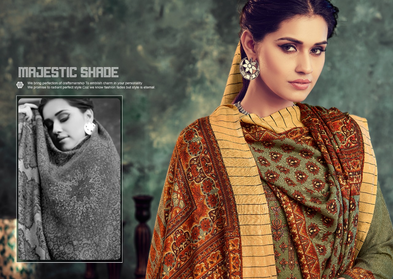 *# pure pashmina winter collection* _*......LEVISHA ® BRAND......*_ _presents_ *�PAKIZA�* _Embrodry collection_ ?Top: 100% Pure Pashmina Print with Fancy self Embroidery work. (2.50 mtrs) ?Dupatta: 100% Pure Pashmina Box pallu Printed (2.40 mtr) ?Bottom: pure pashmina twil dyed (3 mtrs apx) ?Pcs: 8? ?Selling Rate:5? 9?5?/- (GST extra) ? Dispatch :- 2?4? Oct. . |