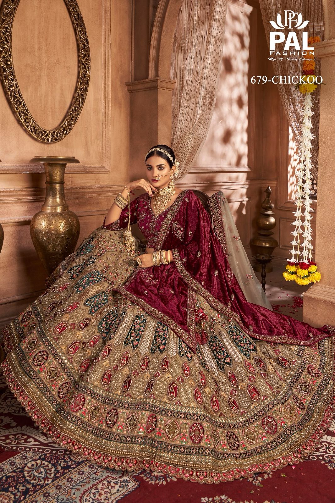 Pal Fashion Design 679 680 699 Designer Velvet Lehengacholi Wedding Session For Women Manufacturing Surat