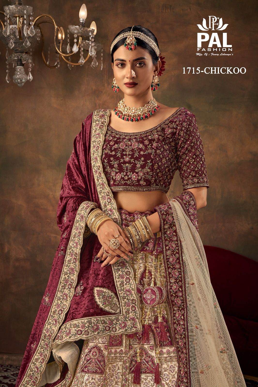 Buy Online Pal Fashion Designer Velvet Lehengacholi Wedding Session 4 Pcs of Full Catalogue at Wholesale Price. Looking for Pal Fashion Designer Velvet Lehengacholi Wedding Session Full Catalouge at Best Price? Buy Now Pal Fashion Designer Velvet Lehengacholi Wedding Session at Wholesale Rate of Rs 0 with Total 4 Pcs from authroized dealer and supplier of Brand. Cost of Each piece is just only Rs 0 which is very low and affordable price to resale the product in your retail store ,This is Surat based Wholesale Supplier & Dealer of Brand. Click on Brand name to Know more about Brand's products.Call or Whatsapp on 9898838984 for booking or enquiry