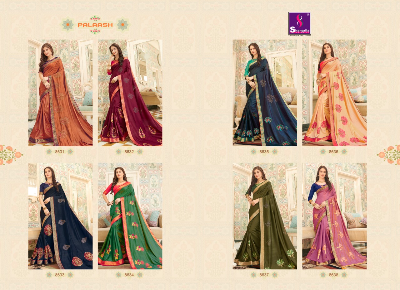 Buy Online Palaash By Shangrila Fancy Designer Party Wear Suits Wholesale Supplier Gujarat 8 Pcs of Full Catalogue at Wholesale Price. Looking for Palaash By Shangrila Fancy Designer Party Wear Suits Wholesale Supplier Gujarat Full Catalouge at Best Price? Buy Now Palaash By Shangrila Fancy Designer Party Wear Suits Wholesale Supplier Gujarat at Wholesale Rate of Rs 9520 with Total 8 Pcs from authroized dealer and supplier of SHANGRILA Brand. Cost of Each piece is just only Rs 1190 which is very low and affordable price to resale the product in your retail store ,This is Surat based Wholesale Supplier & Dealer of SHANGRILA Brand. Click on Brand name to Know more about SHANGRILA Brand's products.Call or Whatsapp on 9898838984 for booking or enquiry