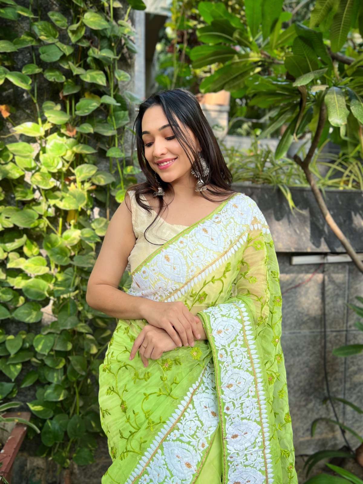 Catalog Name : *Palak Saavi* No of Pcs : 5 Fabric : Organza Work : PURE ORGANZA SILK SAREE WiTH THREAD WORK AND PIPING BORDER WITH SATIN BENGLORI BLOUSE