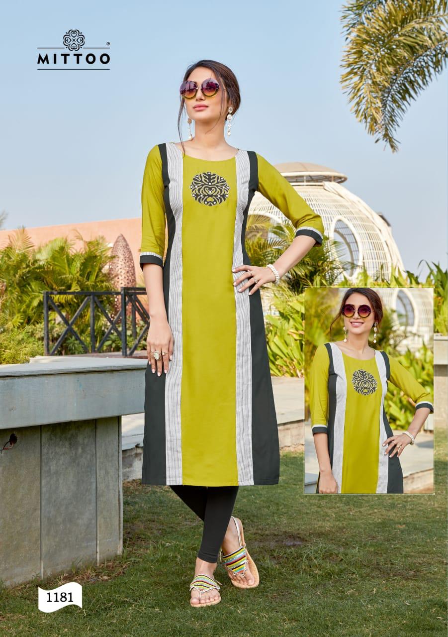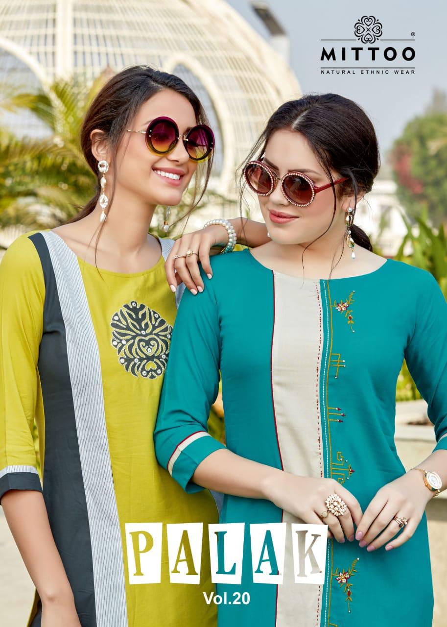 Buy Online Palak Vol 20 By Mittoo Reyon Kurtis Wholesale Supplier Gujarat 8 Pcs of Full Catalogue at Wholesale Price. Looking for Palak Vol 20 By Mittoo Reyon Kurtis Wholesale Supplier Gujarat Full Catalouge at Best Price? Buy Now Palak Vol 20 By Mittoo Reyon Kurtis Wholesale Supplier Gujarat at Wholesale Rate of Rs 3560 with Total 8 Pcs from authroized dealer and supplier of MITTOO Brand. Cost of Each piece is just only Rs 445 which is very low and affordable price to resale the product in your retail store ,This is Surat based Wholesale Supplier & Dealer of MITTOO Brand. Click on Brand name to Know more about MITTOO Brand's products.Call or Whatsapp on 9898838984 for booking or enquiry