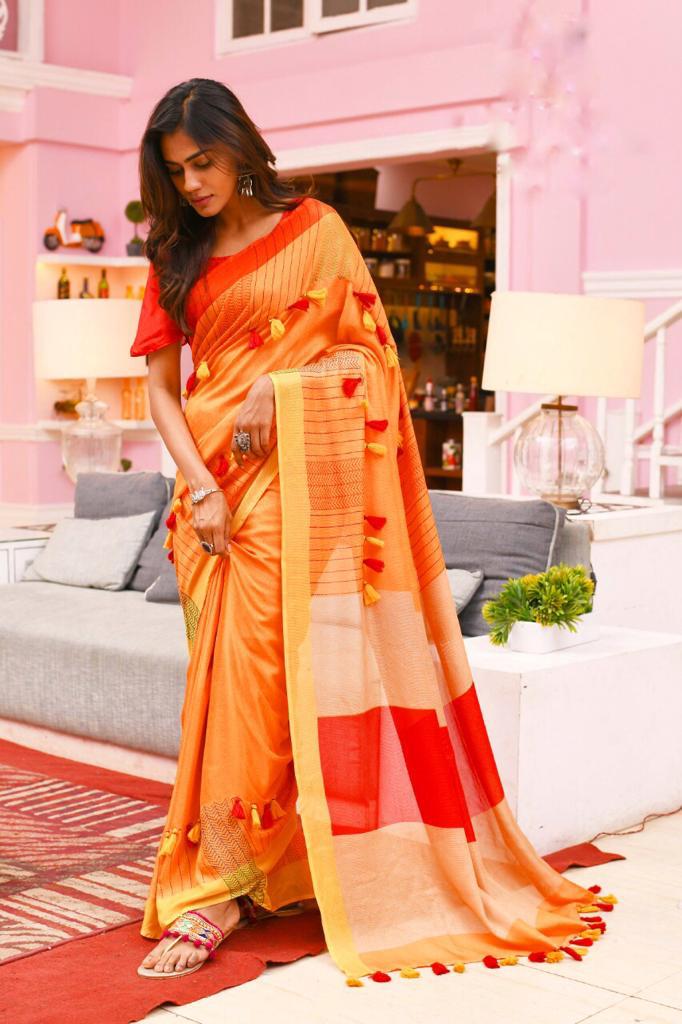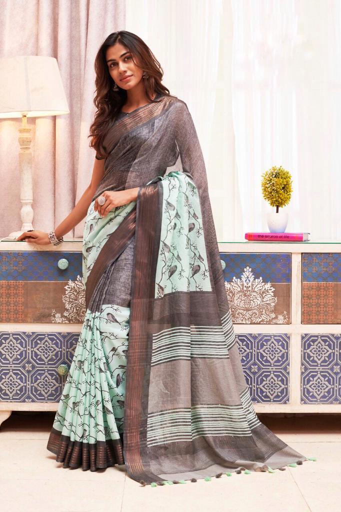 Palash Vol 4 By Obf 1043 Series Fancy Linen Printed Saree Collection Wholesaler Surat