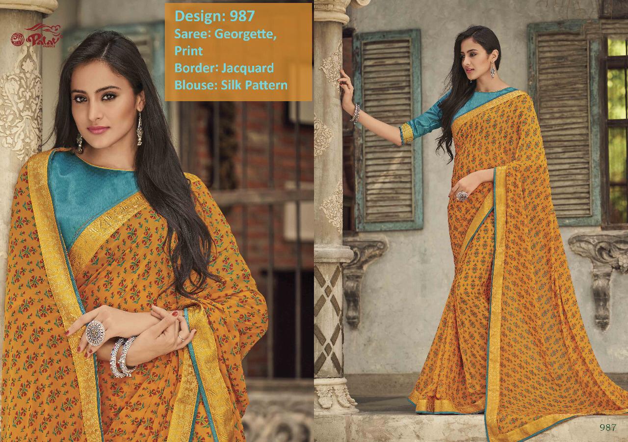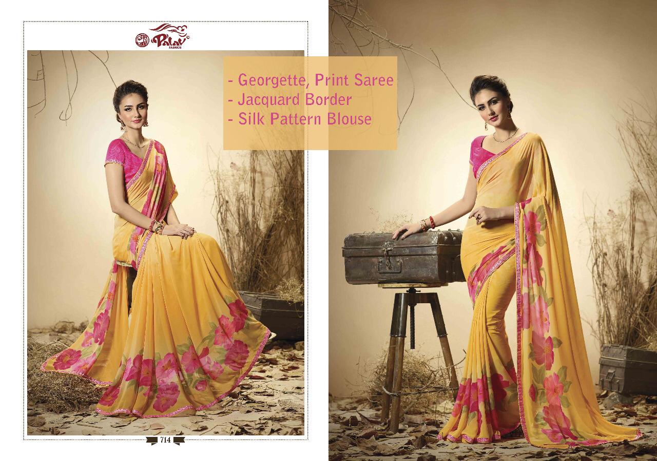 Buy Online Palav Series 708 Fancy Designer Party Wear Sarees Wholesale Supplier Gujarat 0 Pcs of Full Catalogue at Wholesale Price. Looking for Palav Series 708 Fancy Designer Party Wear Sarees Wholesale Supplier Gujarat Full Catalouge at Best Price? Buy Now Palav Series 708 Fancy Designer Party Wear Sarees Wholesale Supplier Gujarat at Wholesale Rate of Rs 0 with Total 0 Pcs from authroized dealer and supplier of Palav Brand. Cost of Each piece is just only Rs 0 which is very low and affordable price to resale the product in your retail store ,This is Surat based Wholesale Supplier & Dealer of Palav Brand. Click on Brand name to Know more about Palav Brand's products.Call or Whatsapp on 9898838984 for booking or enquiry