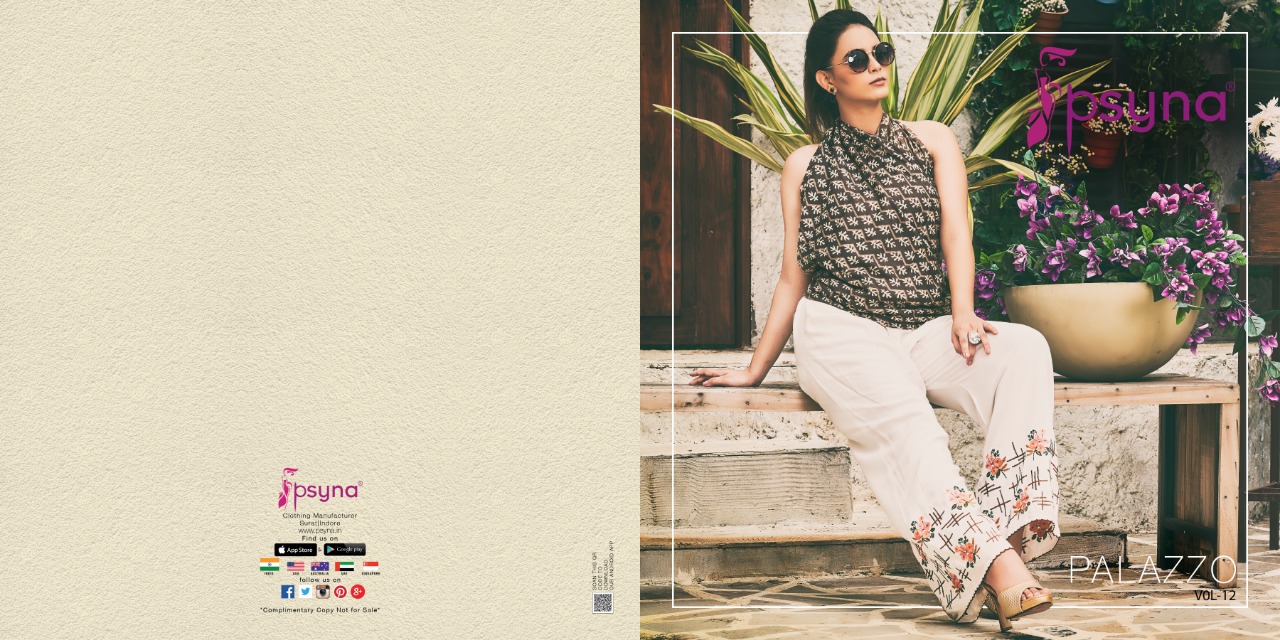 Buy Online Palazzo Vol 12 By Pysna Reyon Embroideried Plazzo Cetlog Wholesale Dealer And Supplier Surat 10 Pcs of Full Catalogue at Wholesale Price. Looking for Palazzo Vol 12 By Pysna Reyon Embroideried Plazzo Cetlog Wholesale Dealer And Supplier Surat Full Catalouge at Best Price? Buy Now Palazzo Vol 12 By Pysna Reyon Embroideried Plazzo Cetlog Wholesale Dealer And Supplier Surat at Wholesale Rate of Rs 4250 with Total 10 Pcs from authroized dealer and supplier of PSYNA Brand. Cost of Each piece is just only Rs 425 which is very low and affordable price to resale the product in your retail store ,This is Surat based Wholesale Supplier & Dealer of PSYNA Brand. Click on Brand name to Know more about PSYNA Brand's products.Call or Whatsapp on 9898838984 for booking or enquiry