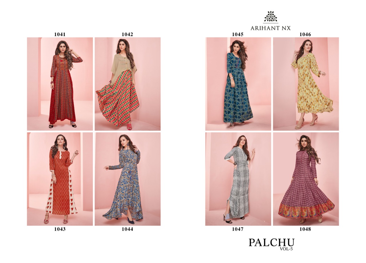 Palchu Vol 5 By Arihant Nx 1041 Series Fancy Reyon Kurti Collection Wholesale Dealer Surat