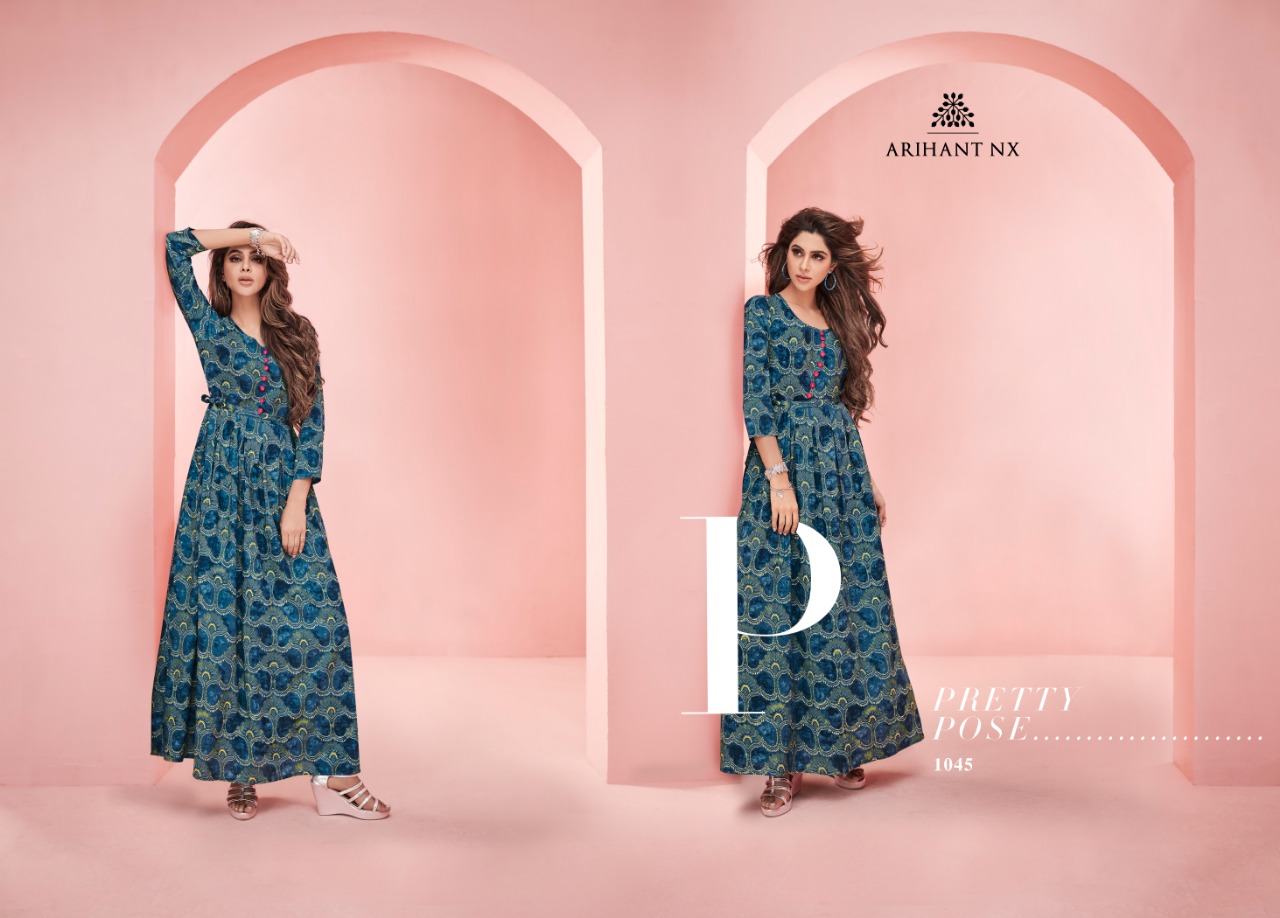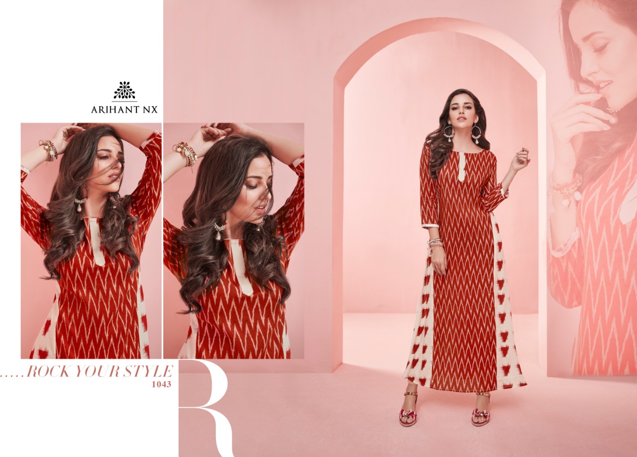 Buy Online Palchu Vol 5 By Arihant Nx 1041 Series Fancy Reyon Kurti Collection Wholesale Dealer Surat 8 Pcs of Full Catalogue at Wholesale Price. Looking for Palchu Vol 5 By Arihant Nx 1041 Series Fancy Reyon Kurti Collection Wholesale Dealer Surat Full Catalouge at Best Price? Buy Now Palchu Vol 5 By Arihant Nx 1041 Series Fancy Reyon Kurti Collection Wholesale Dealer Surat at Wholesale Rate of Rs 4792 with Total 8 Pcs from authroized dealer and supplier of ARIHANT NX Brand. Cost of Each piece is just only Rs 599 which is very low and affordable price to resale the product in your retail store ,This is Surat based Wholesale Supplier & Dealer of ARIHANT NX Brand. Click on Brand name to Know more about ARIHANT NX Brand's products.Call or Whatsapp on 9898838984 for booking or enquiry