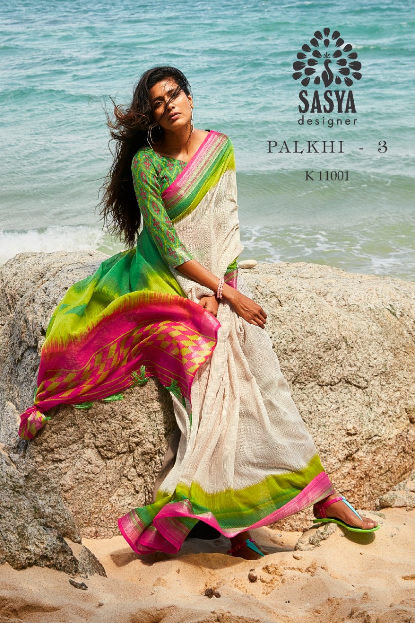 . Palkhi-3 catalogue by Sasya Pure Linen Fabric Weaving Silver Zari Border 699/- Rate 10-pic catalogue Set To Set. GST 5 Percent Extra. Delivery 2 days |
