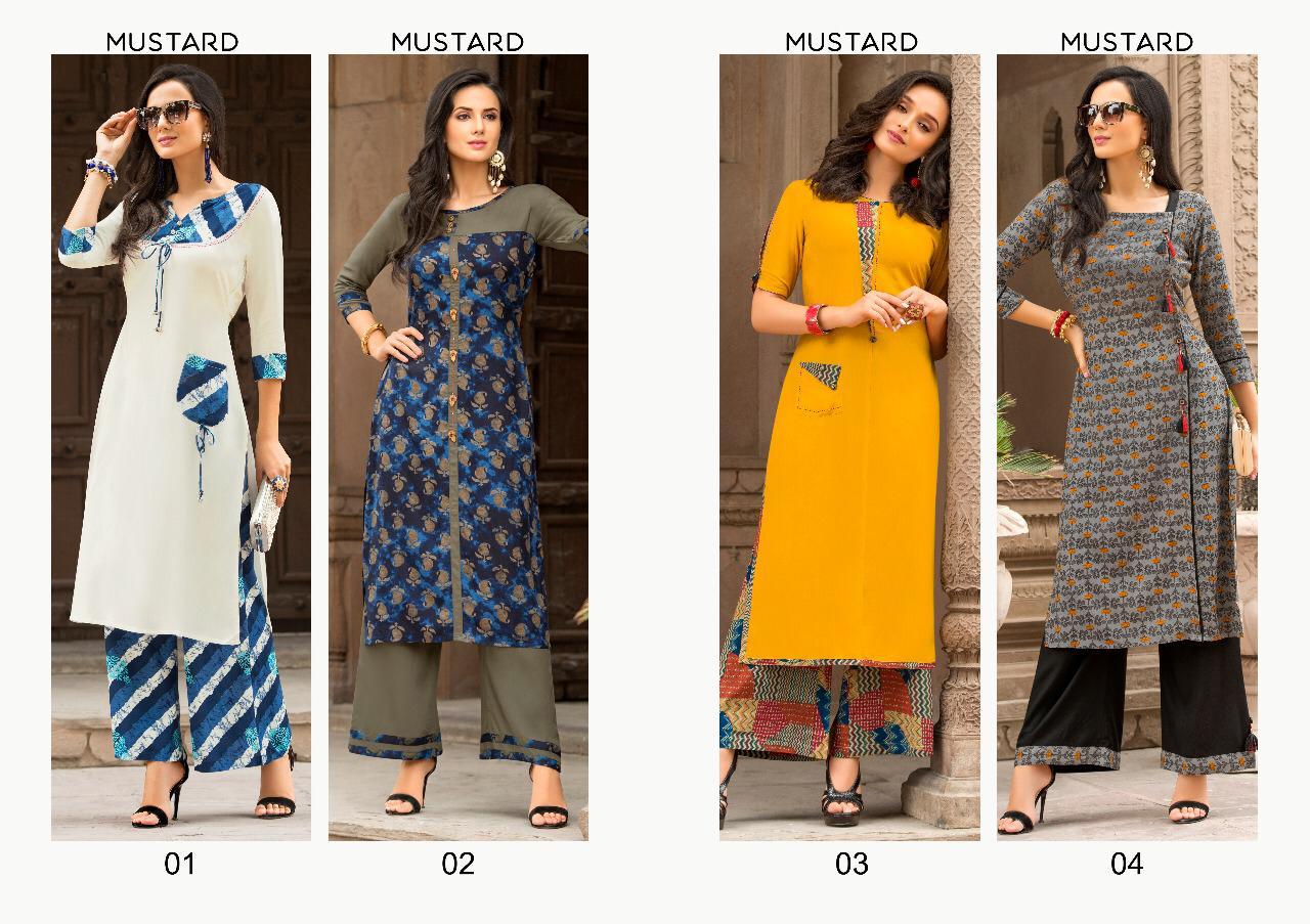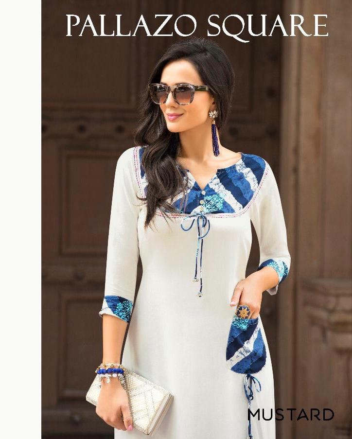 Buy Online Pallazo Square By Mustard 01 Series Reyon Cotton Printed Kurti Catlog Wholesale Dealer Surat 4 Pcs of Full Catalogue at Wholesale Price. Looking for Pallazo Square By Mustard 01 Series Reyon Cotton Printed Kurti Catlog Wholesale Dealer Surat Full Catalouge at Best Price? Buy Now Pallazo Square By Mustard 01 Series Reyon Cotton Printed Kurti Catlog Wholesale Dealer Surat at Wholesale Rate of Rs 2900 with Total 4 Pcs from authroized dealer and supplier of Brand. Cost of Each piece is just only Rs 725 which is very low and affordable price to resale the product in your retail store ,This is Surat based Wholesale Supplier & Dealer of Brand. Click on Brand name to Know more about Brand's products.Call or Whatsapp on 9898838984 for booking or enquiry