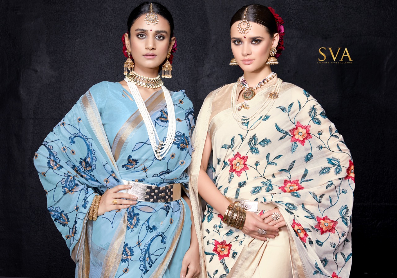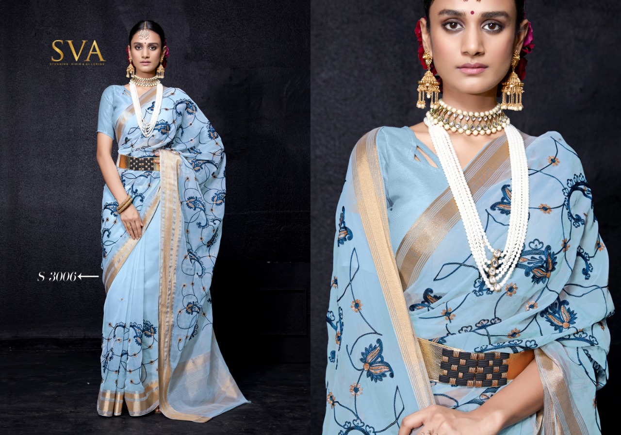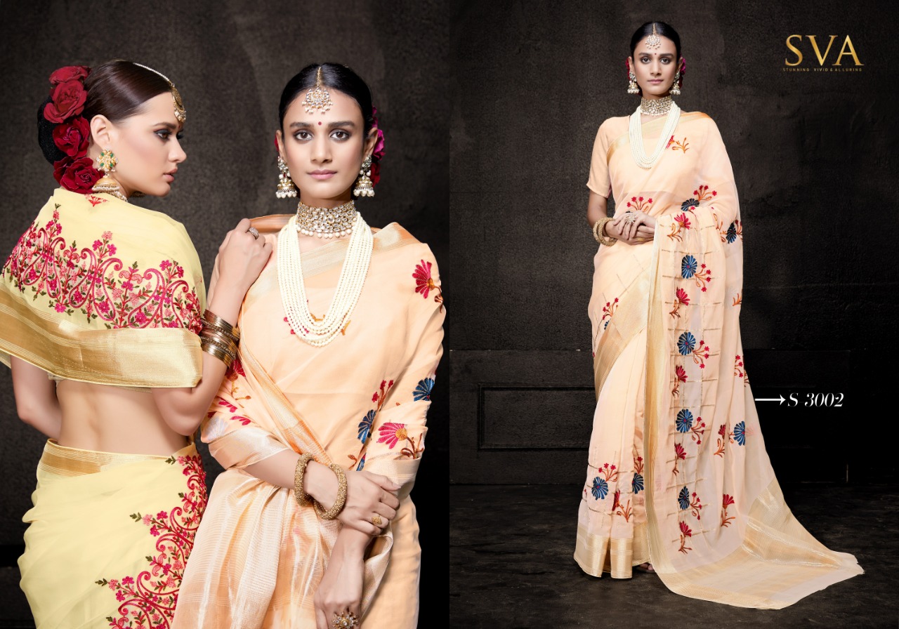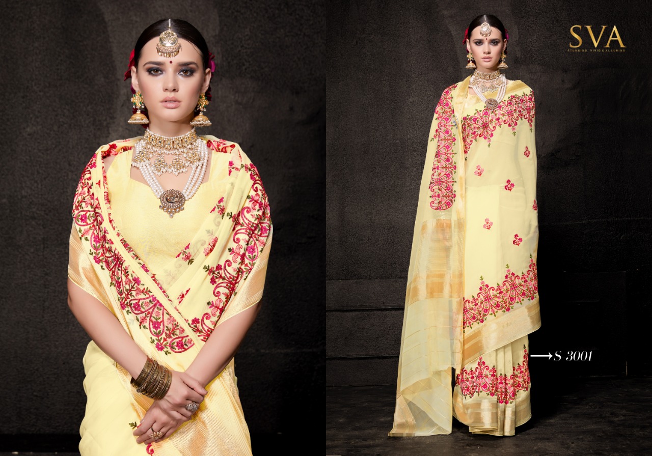 Panalal Vol 2 By Sva 3001 Series Fancy Party Wear Pure Organza Embroidery Saree Catlog Wholesale Dealer Surat