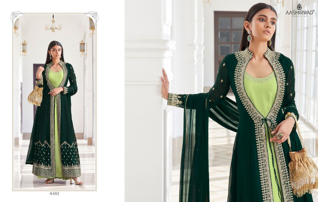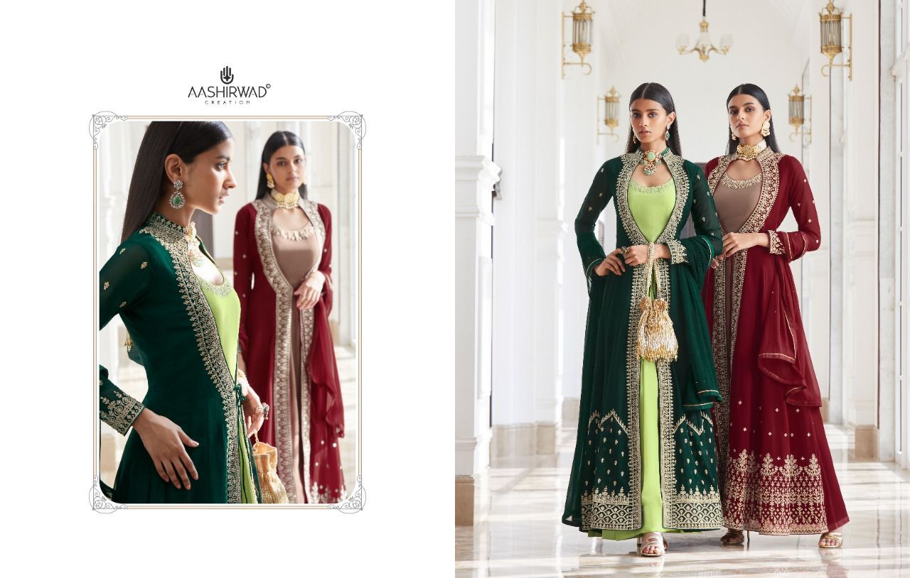 AASHIRWAD CREATION PRESENT NEW FREE SIZE STITCH COLLECTION ??Panchratna ?? ?FABRIC DETAILS !!!! TOP-REAL GEORGETTE (free size stitch ) jacket separately free size stitch INNER- SILK SANTOON BOTTOM- SILK SANTOON DUPTTA- NAZMIN Price - 2195/- Gst - 12 percent extra Dispatching in 3 days !!! Set @ loose @ Singel 100+single |